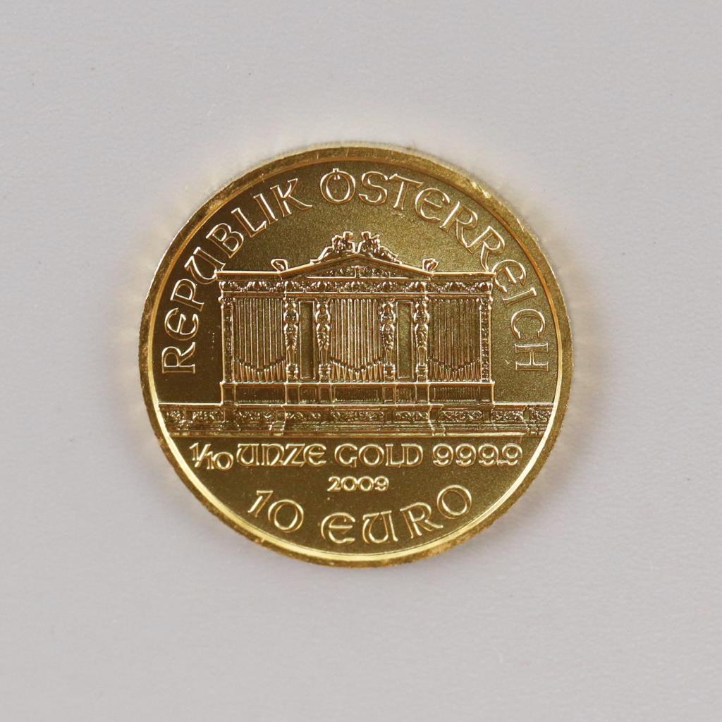 2009 Austrian Philharmonic Fine Gold 10 Euro 1/10th Oz. Coin