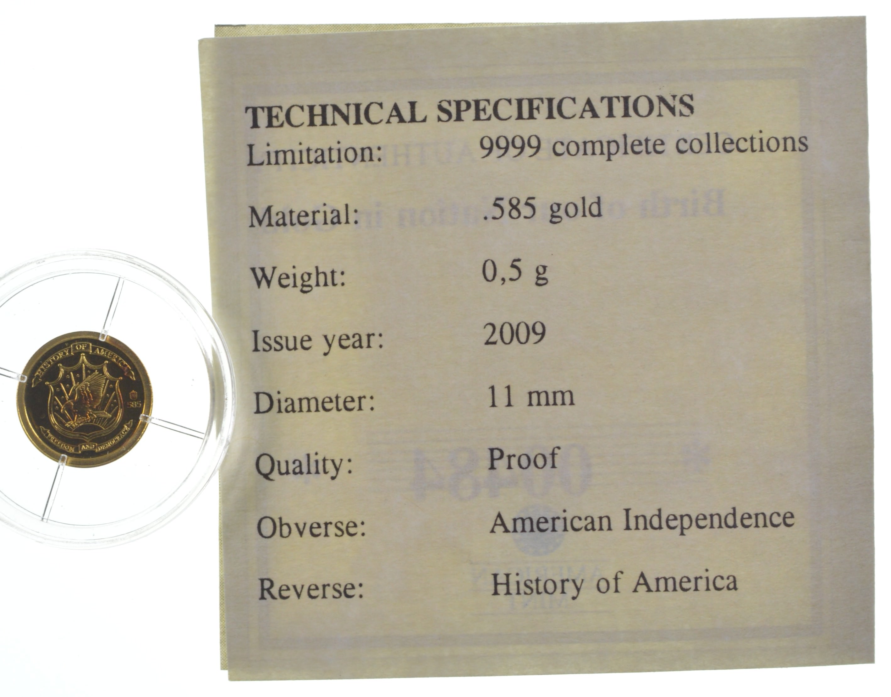 2009 History of America/Declaration of Independence Gold Proof Coin, 585 /EB68