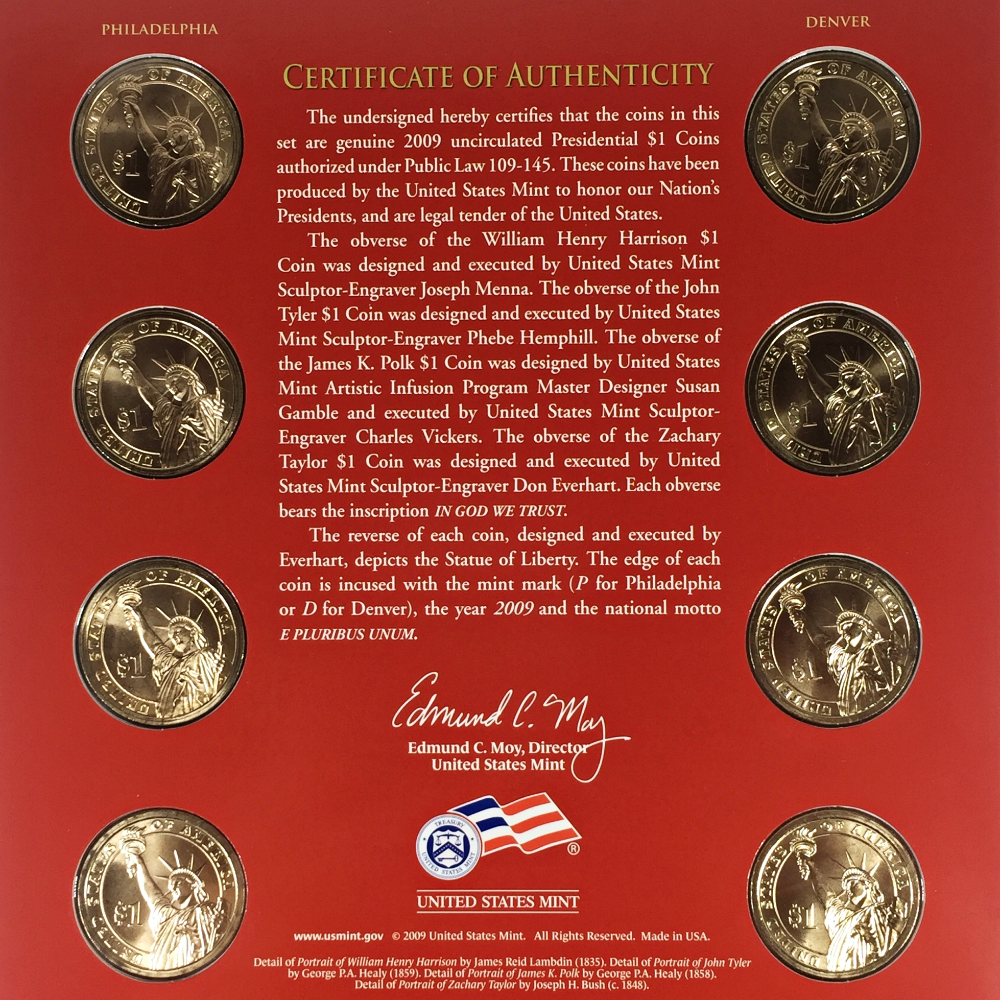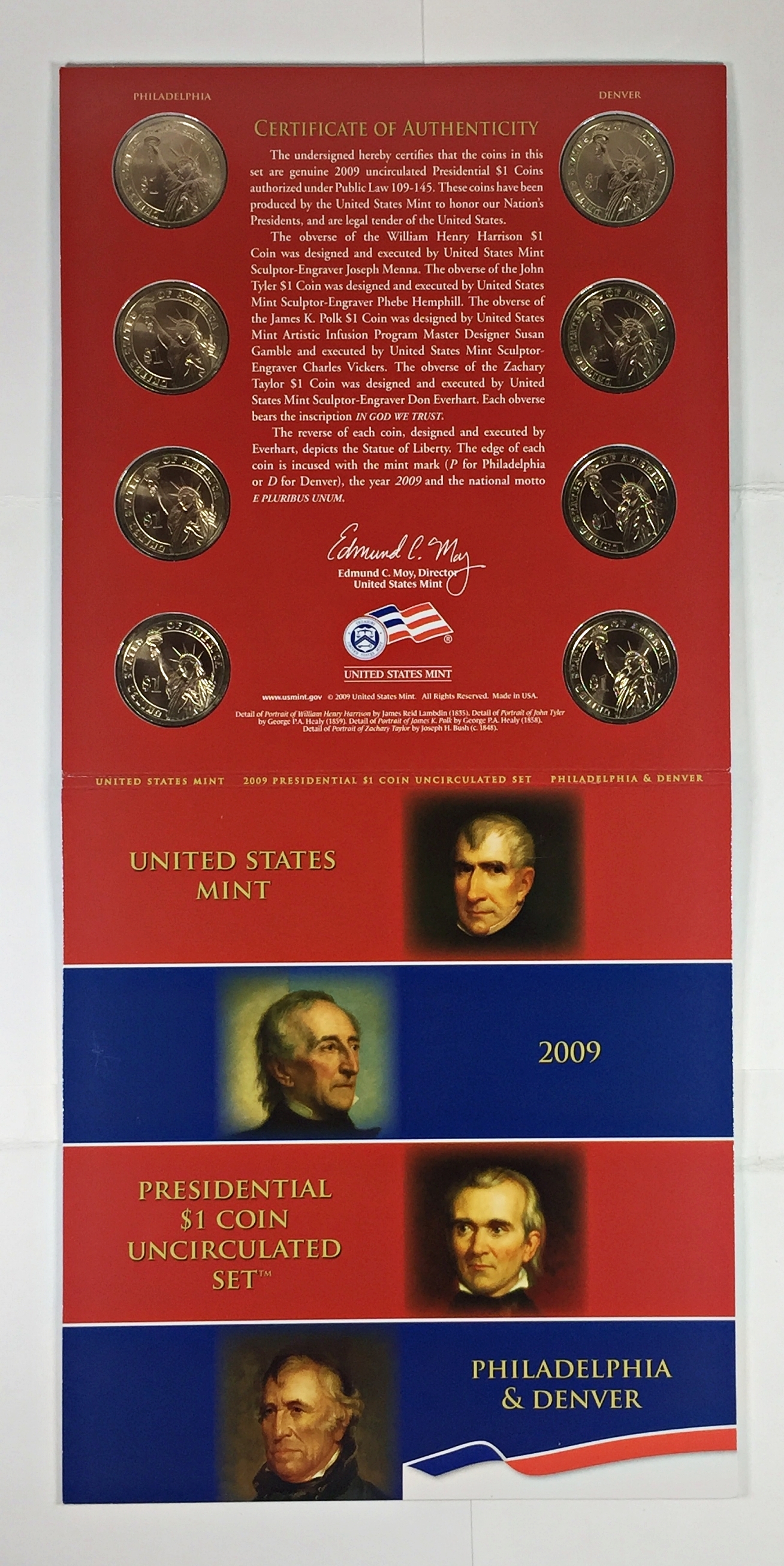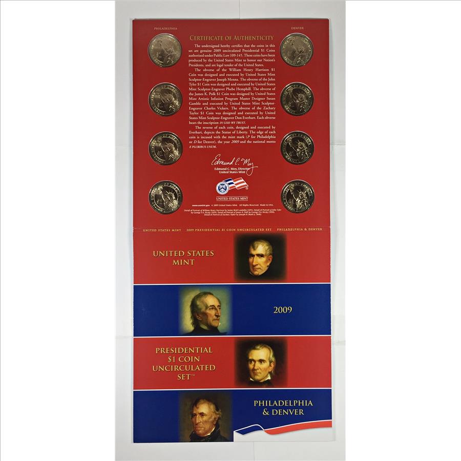 2009 United States Mint Presidential $1 Coin Uncirculated Set*Philadelphia and Denver*Eight Coins In Original US Mint Packaging