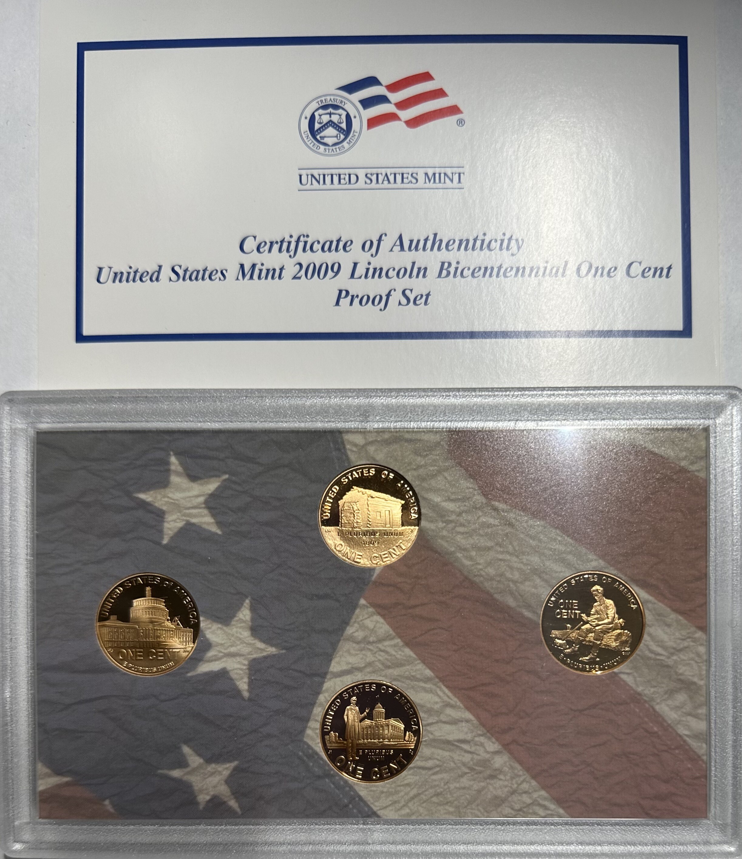 2009-S U.S. Mint Lincoln Bicentennial One Cent Proof Set - 4 Coins in Original Mint Packaging with COA