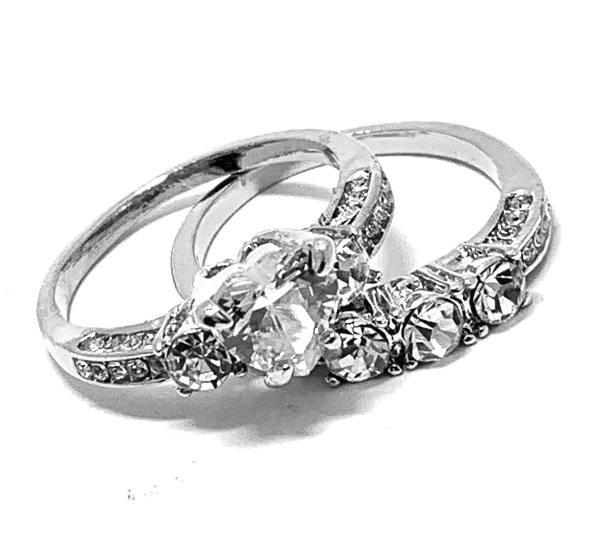 2.00ctw Cubic Zirconia 18k White Gold Overlay Bridal Engagement Ring Set