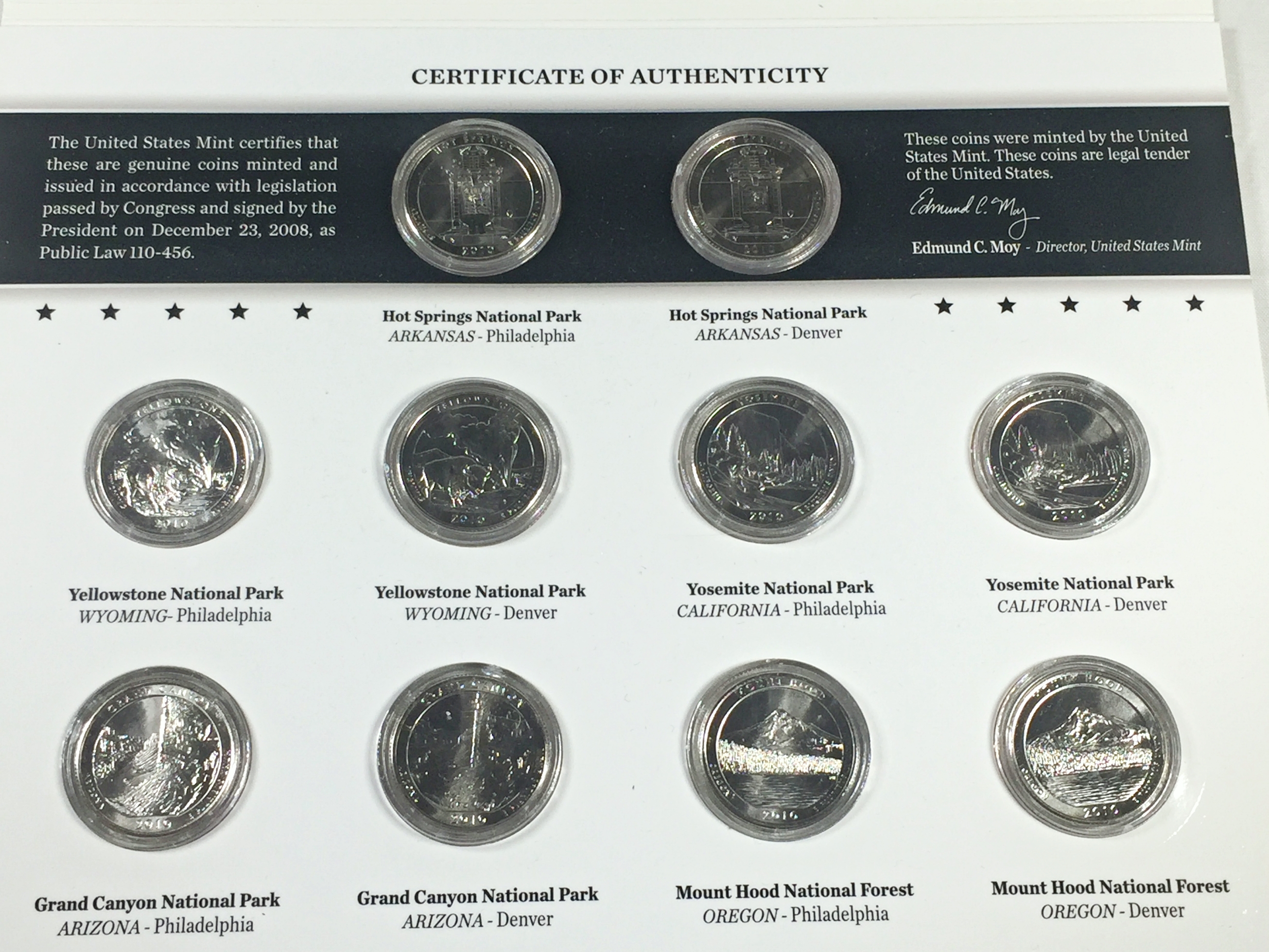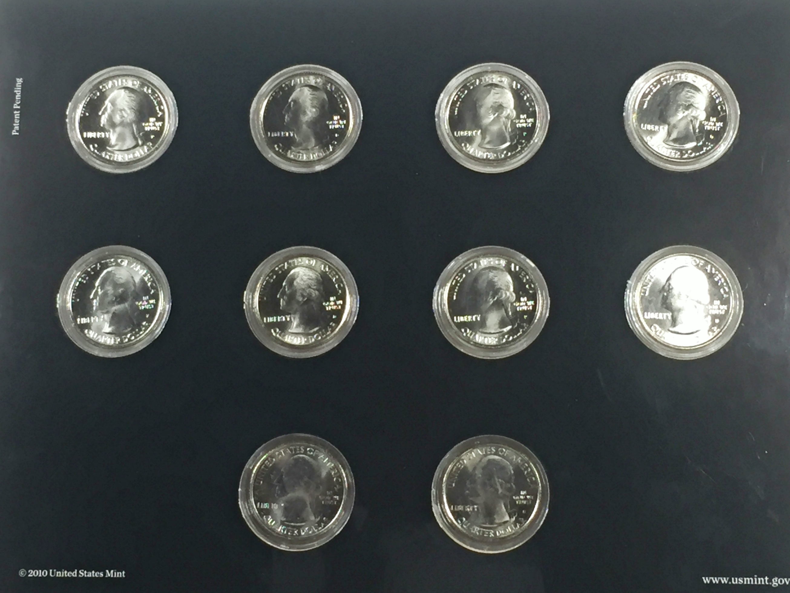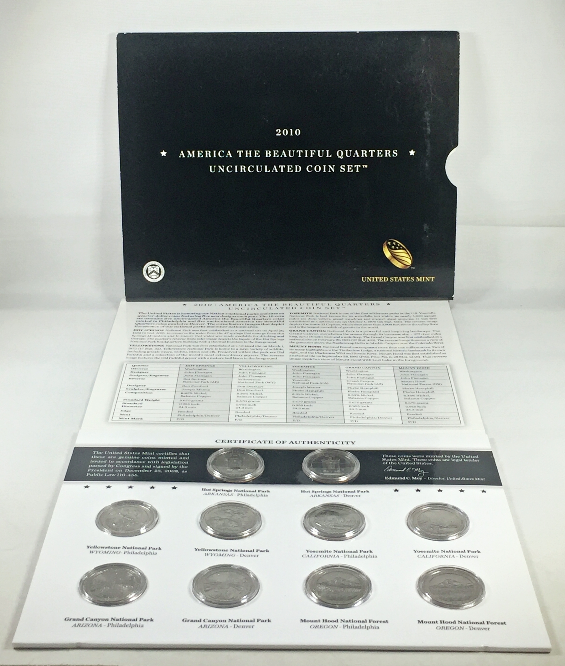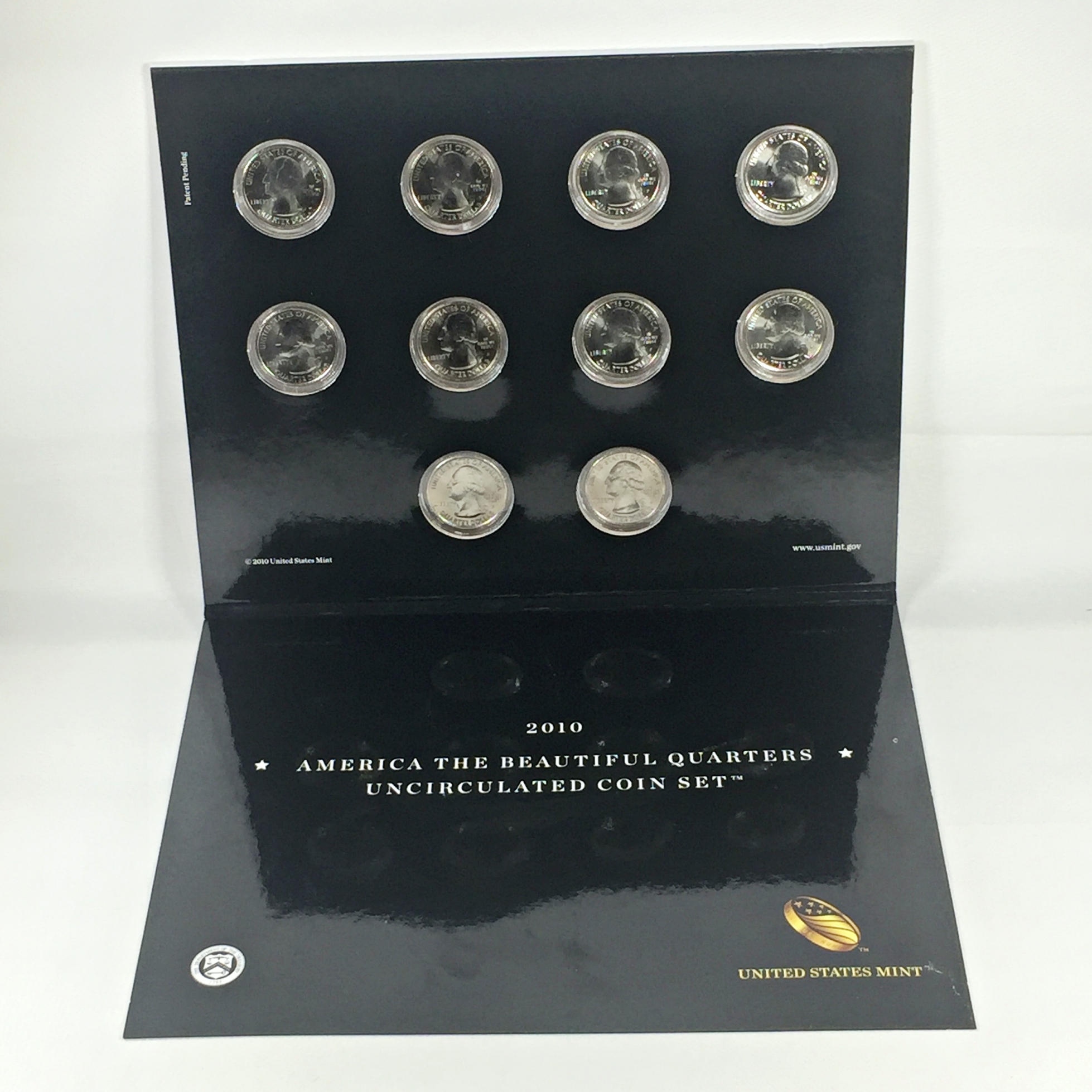 2010 America the Beautiful Quarters Uncirculated Coin Set*10 P & D Quarters in Capsules and Tri-fold Story Board
