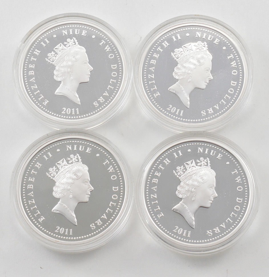 2011 Niue $2 - The Real Pirates Of The Caribbean - 1 Oz .999 Fine Silver - 4 Coin Set - Fancy Display & COA