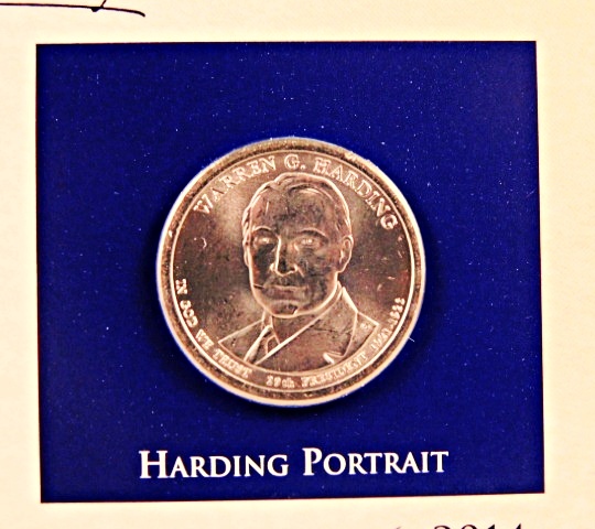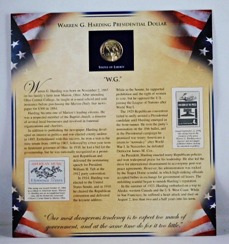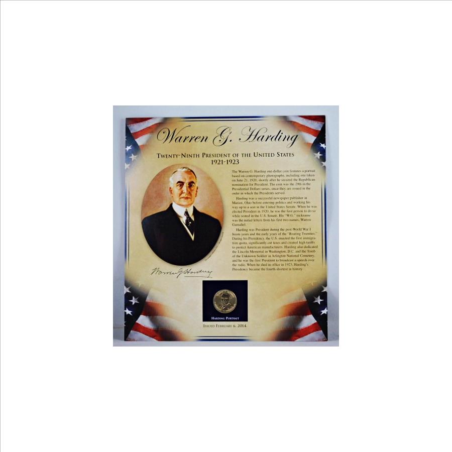 2014 Warren G. Harding Commemorative Presidential Dollar*Encased in 9" x 10" Story Board with 2 Stamps
