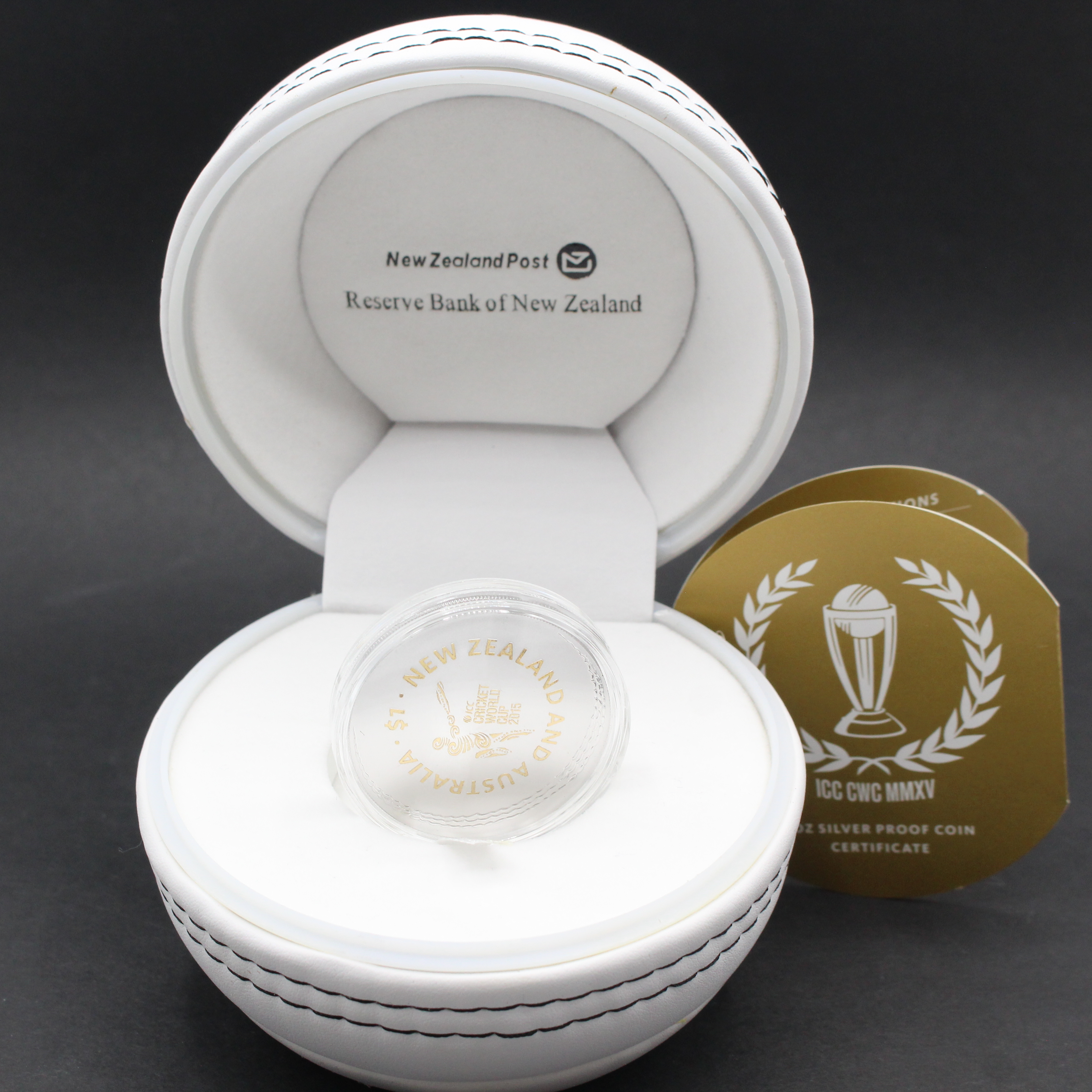 Image is a stock photo. Winning bidder will receive a similar item to the one shown in the photo. Coin comes in cricket ball shaped case along with certificate of authenticity.