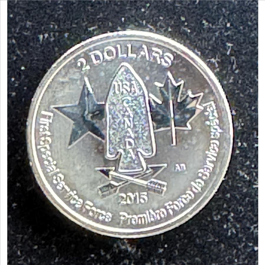 2015 FIRST SPECIAL SERVICE FORCES, USA CANADA .999 FINE SILVER REVERSE PROOF, BU $2 DOLLARS GEM COIN