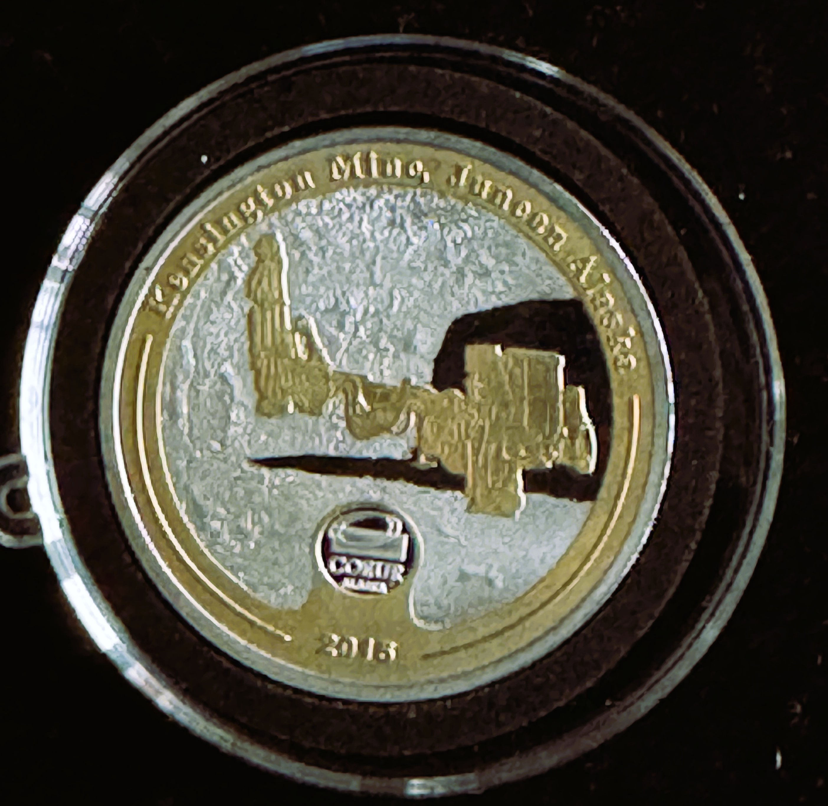 2015 JUNEAU ALASKA KEMSINGTON MINE, RARE, CHINA GOLD, 1oz SILVER PROOF-LIKE UNC COIN IN A CAPSULE