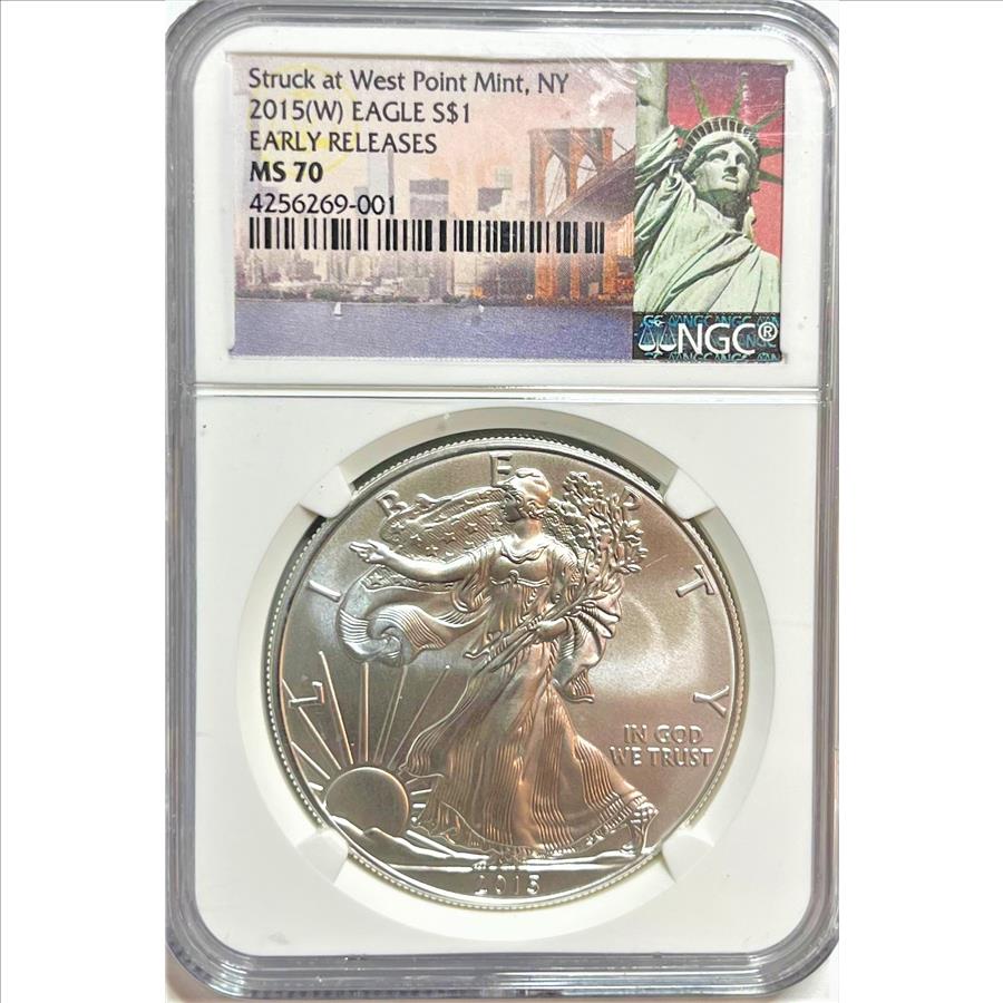 2015 (W) NGC MS70-Struck At West Point Mint, NY- .999 Silver American Eagle One Troy Ounce-Absolutely Perfect MS70 Grade!