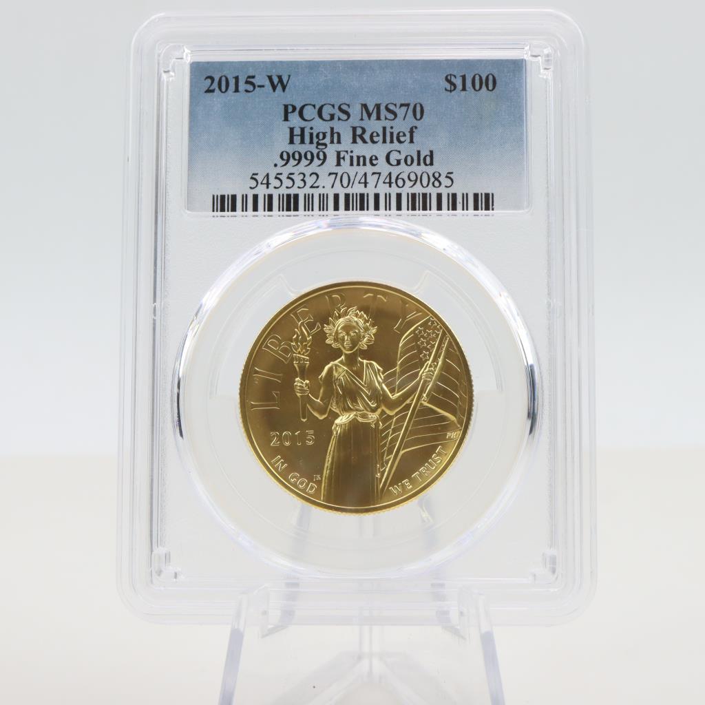 2015-W MS70 High Relief American Liberty Gold 100 Dollar 1oz Fine Gold Coin PCGS Graded