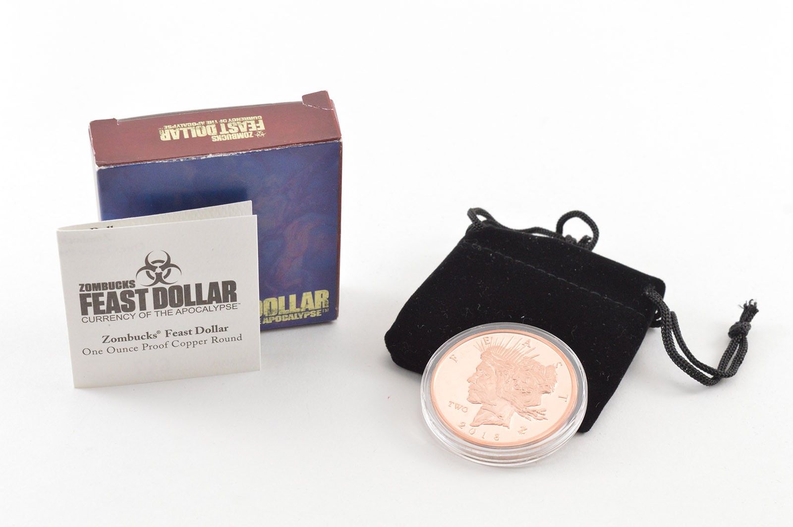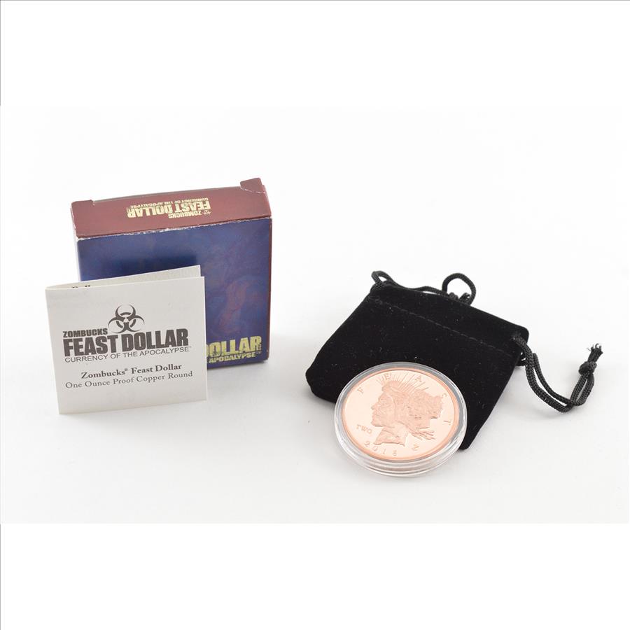 2018 Feast Dollar 2 Zombucks - Currency Of The Apocalypse - 1 Oz Copper Proof - Box & COA