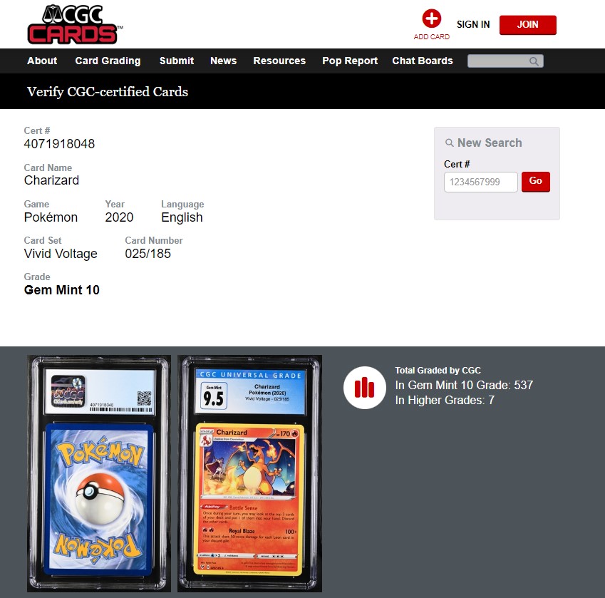 2020 Pokemon - CHARIZARD #25 - Vivid Voltage - CGC GEM MINT 9.5/10