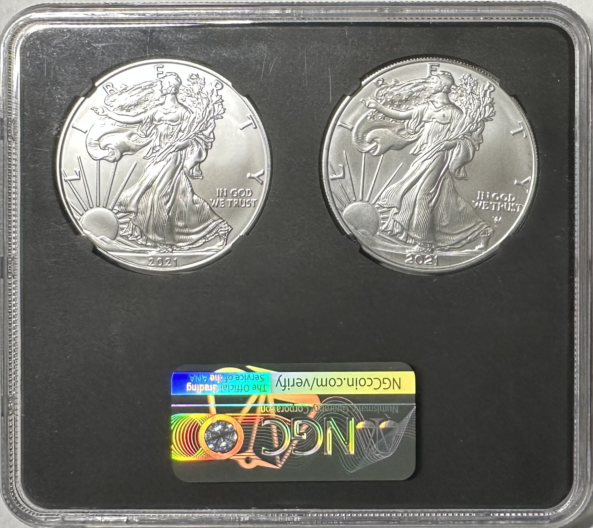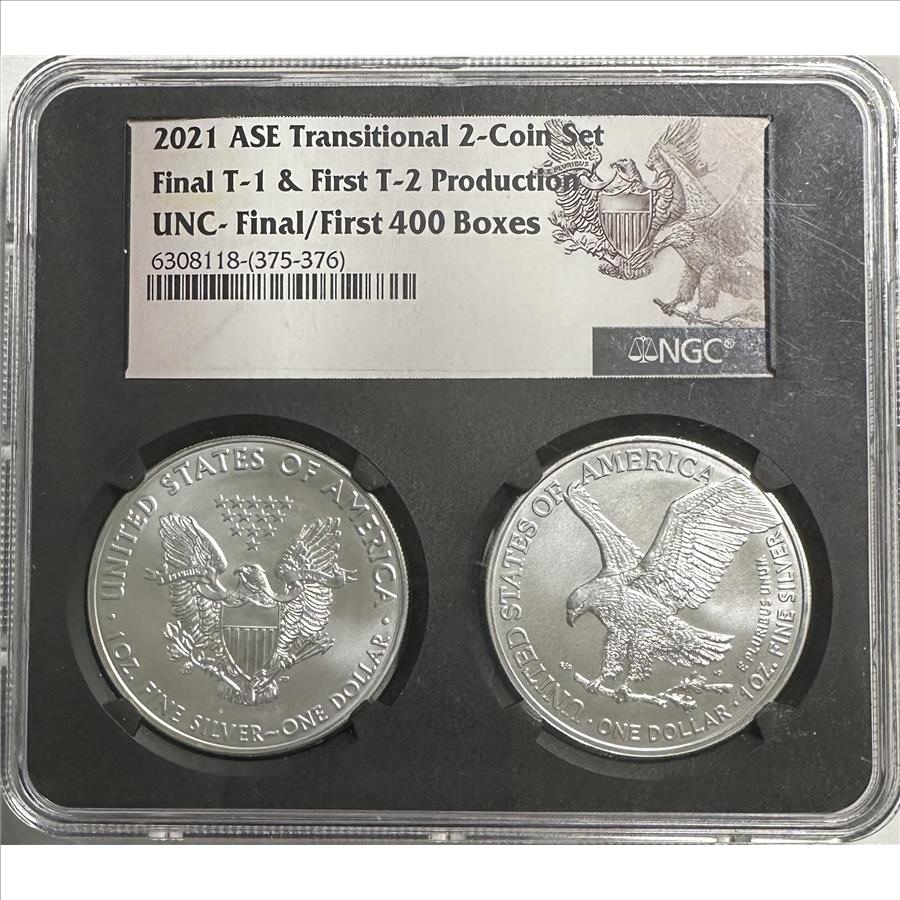 >2021 American Silver Eagle Set - NGC Verified Final T-1 & First T-2 UNC - Final/First 400 Boxes - Gorgeous Set of 2 Coins.