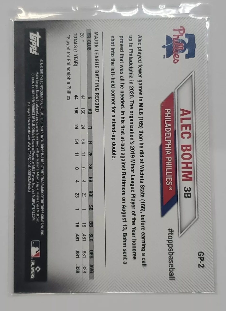 2021 Topps National Baseball Card Day #GP-2 Alec Bohm Rookie Card JC15