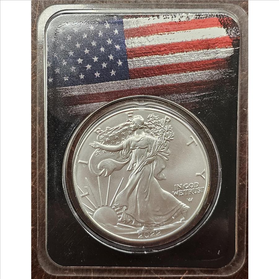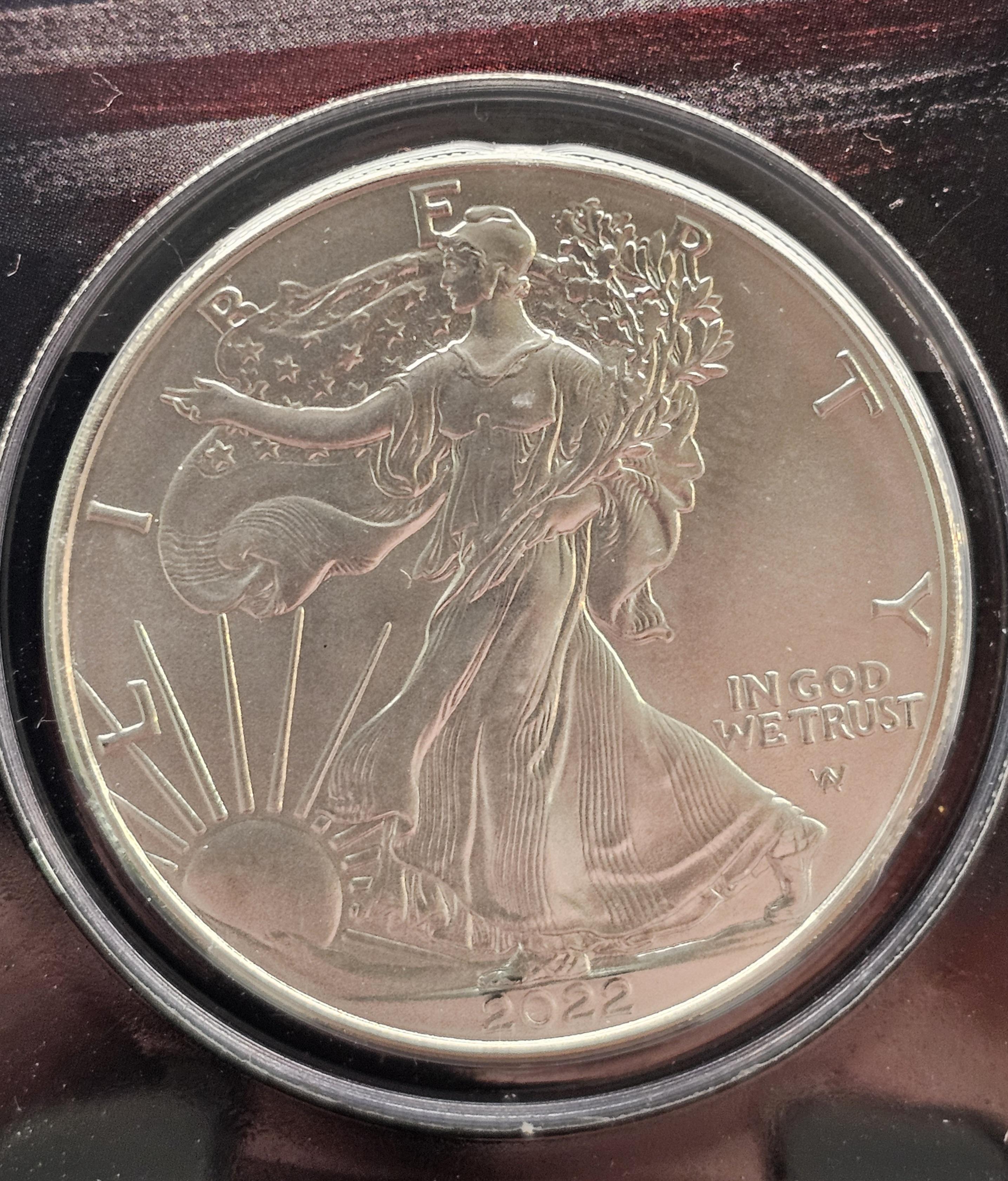 2022 1 oz Silver Eagle - w/American Flag, Black Card, In TEP