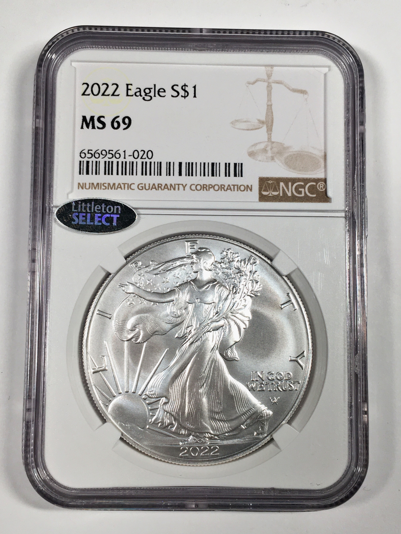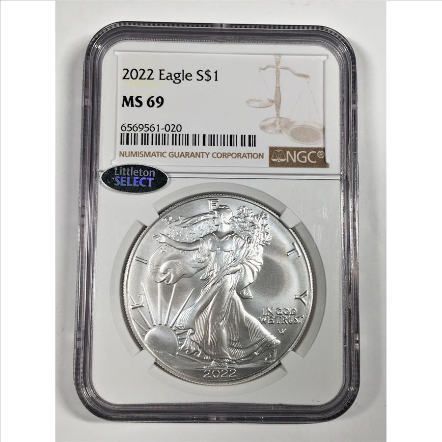 2022 American Silver Eagle*Graded MS69 by NGC*1oz .999 Fine Silver*Littleton Select Sticker