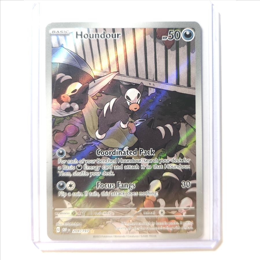 2023 Pokemon HOUNDOUR #204 Obsidian Flames HOLO RARE FULL ART