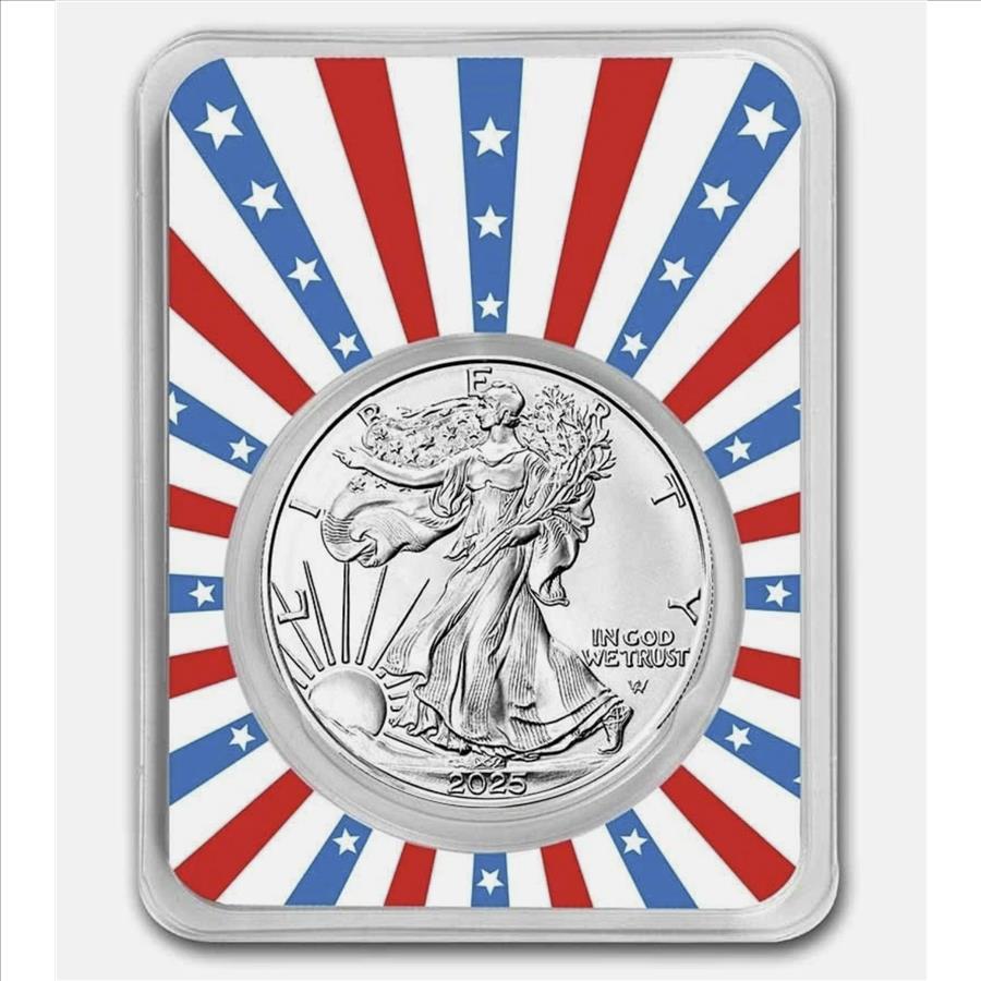 2025 1 oz Silver Eagle - w/Stars & Stripes Burst Card, In TEP