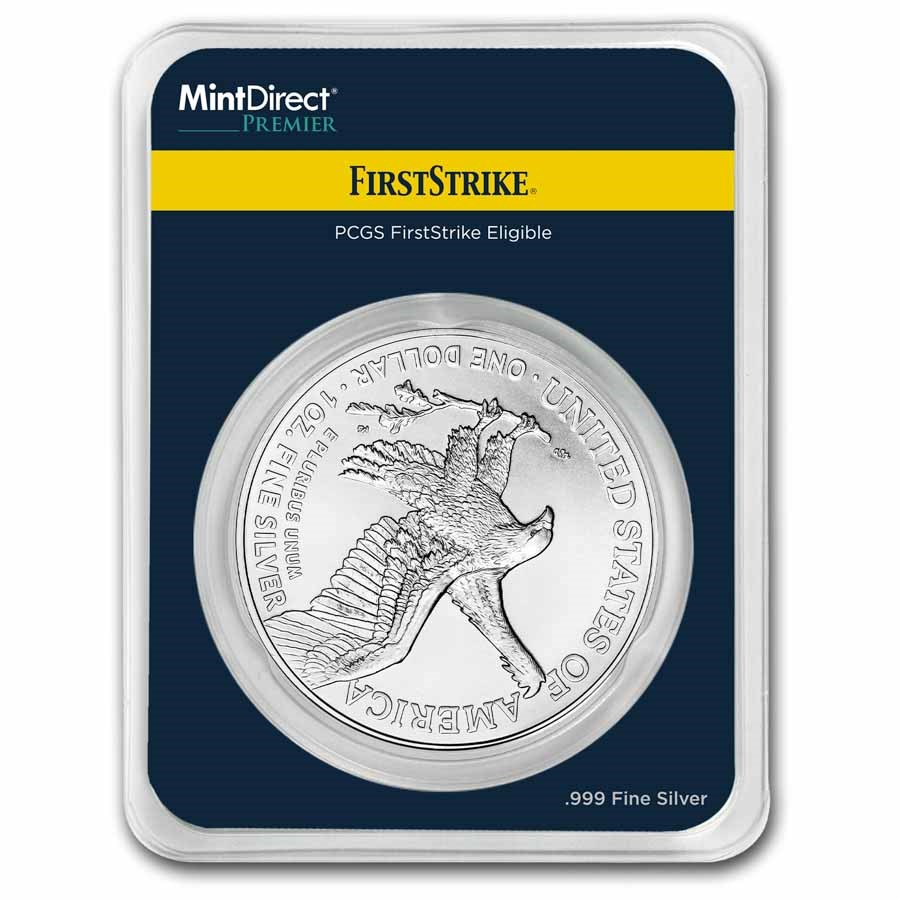 Struck by the United States Mint, this coin contains one troy oz of .999 fine silver and carries the full faith of the U.S. government. Through the Mint Direct  Premier program combined with PCGS First Strike eligibility, each coin is preserved as received and qualifies for elite early-release designation.