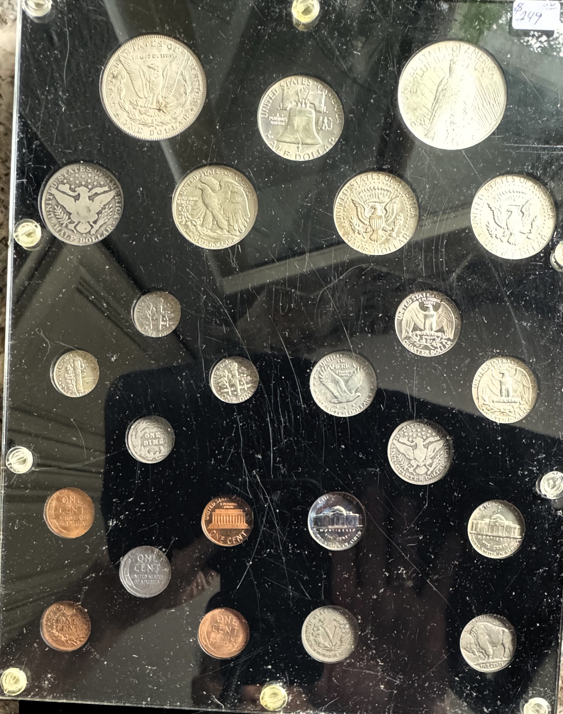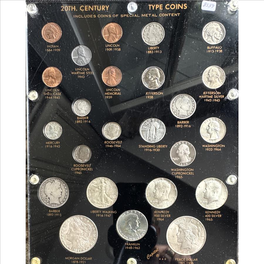 20TH CENTURY TYPE COINS COLLECTION (24 COIN SET) INCL MORGAN & PEACE DOLLARS, NICE CAPITAL DISPLAY CASE