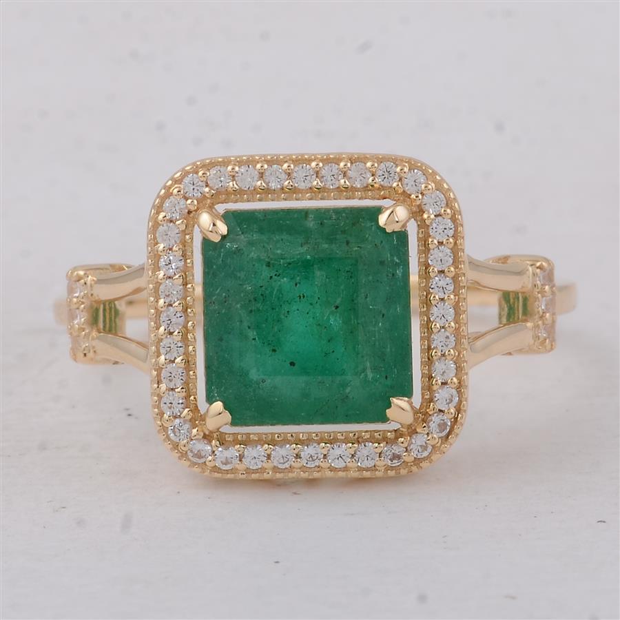 2.17 Total Carat Emerald 9K Gold Ring Specifications - Total Weight 2.52 g - Center Gemstone Emerald - Gemstone Carat Weight 1.98 Carats - Gemstone Measurements 8X7.60X4.70 mm - Additional Gemstones White Sapphire - Additional Gemstone Weight 0.19 Carats - Ring Size (US): 7 We ship within 1–2 business days from our US warehouse.