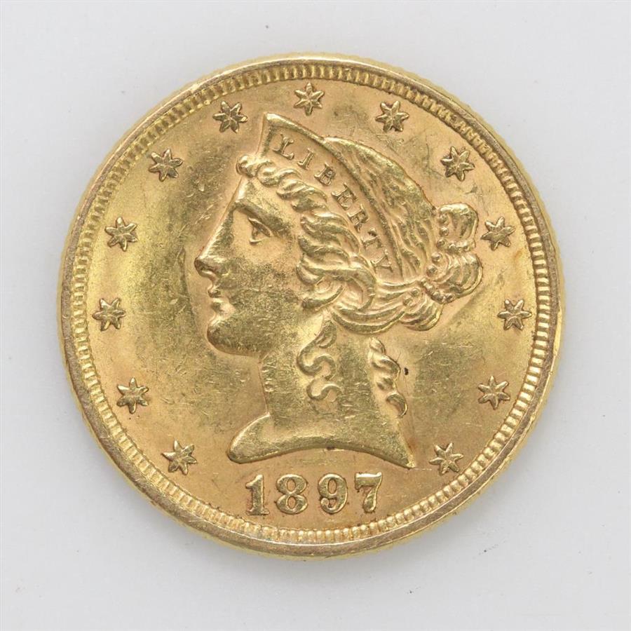 • 21k gold 1897 Liberty Head $5 coin