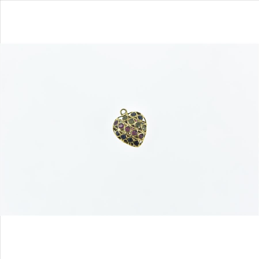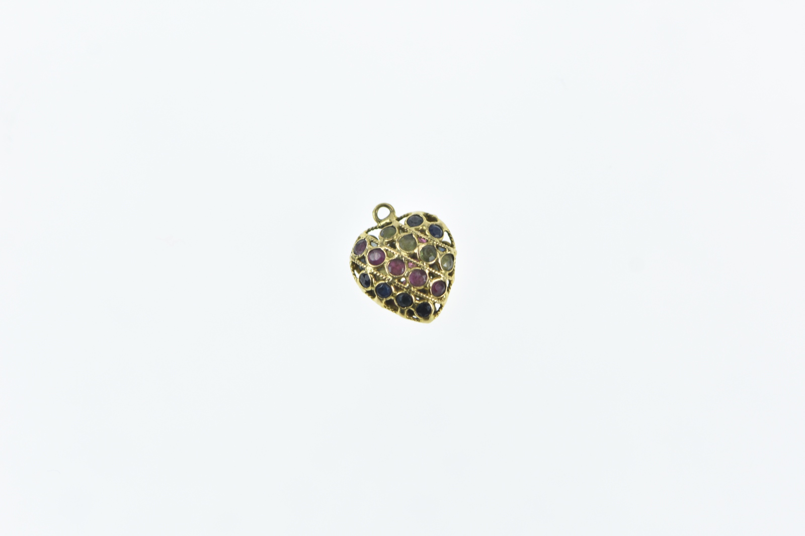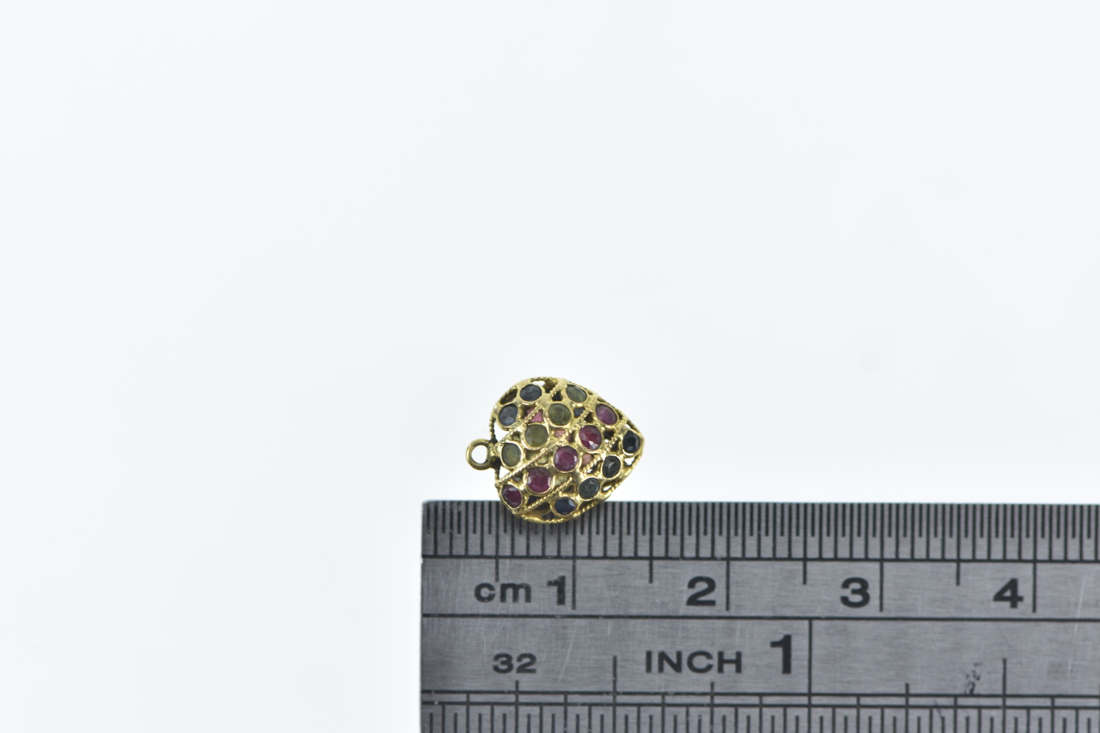 21K Pave Sapphire Ruby Peridot Heart Yellow Gold Charm/Pendant