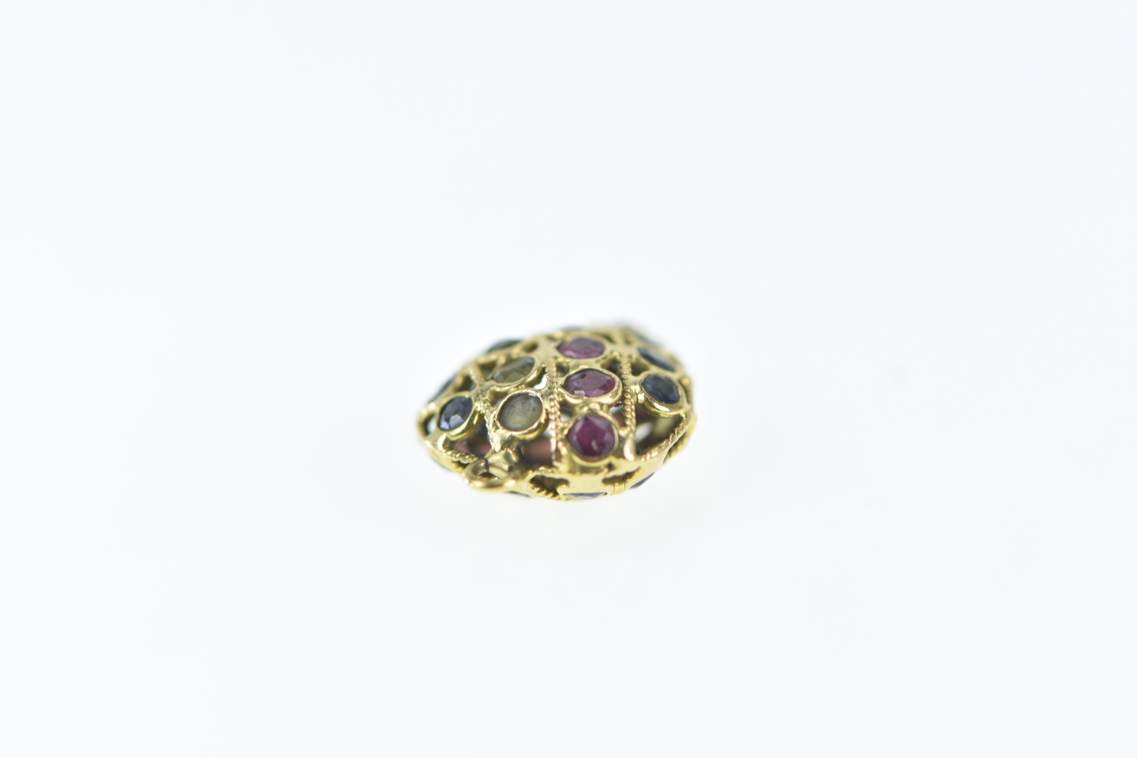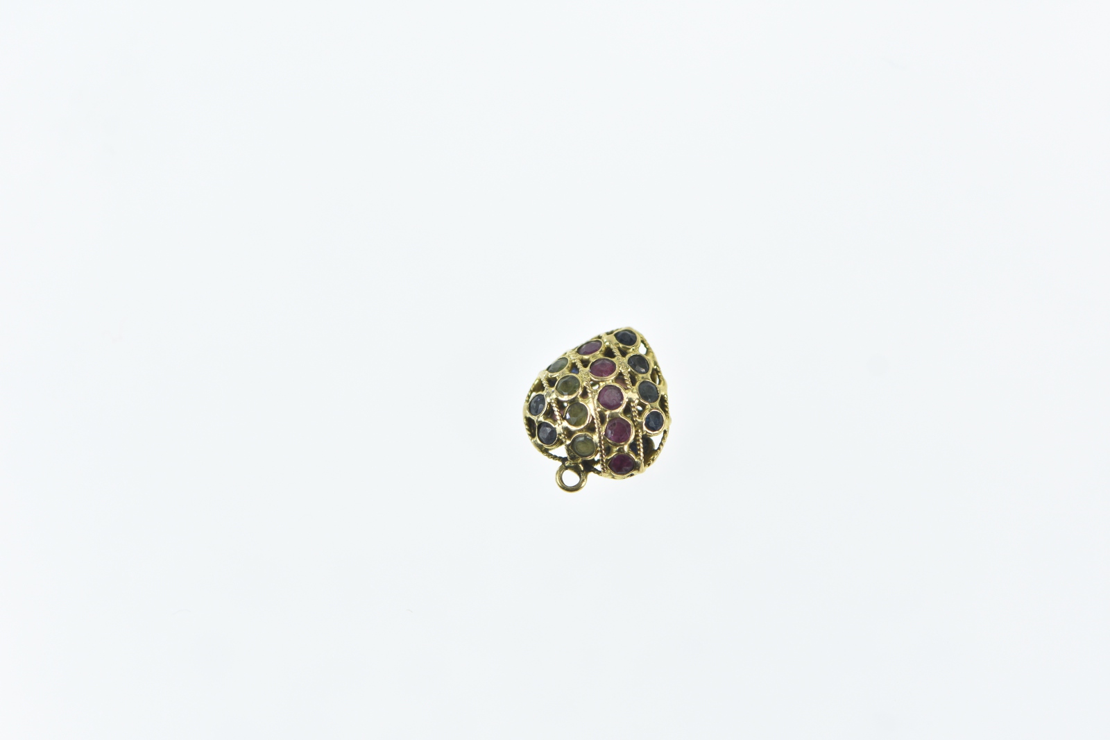 Item:  21K Pave Sapphire Ruby Peridot Heart Yellow Gold Charm/Pendant