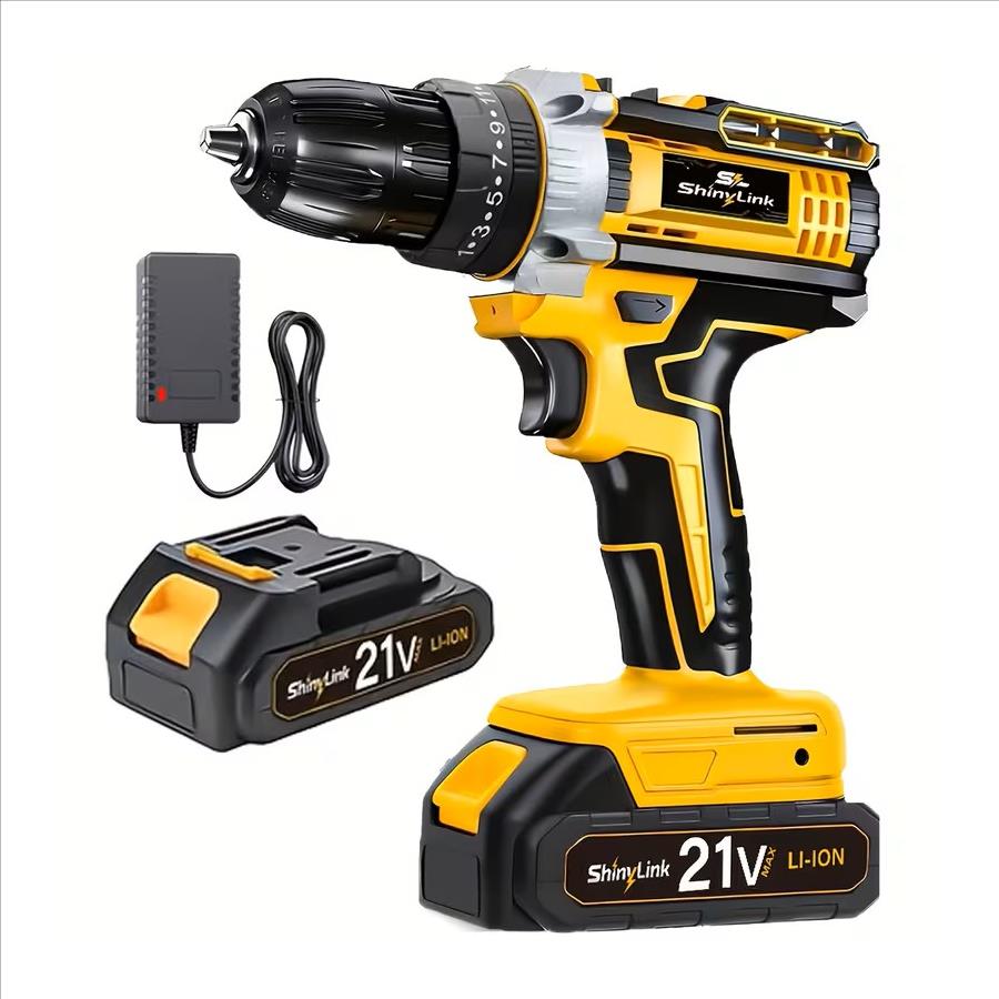 21V Home Multi-Purpose Cordless Drill Tool Set - Rechargeable Cordless Drill ToolBox Set, Equipped With 1 Or 2 Battery, Screwdriver, Tape Measure, Bit Set, ToolBox Set,