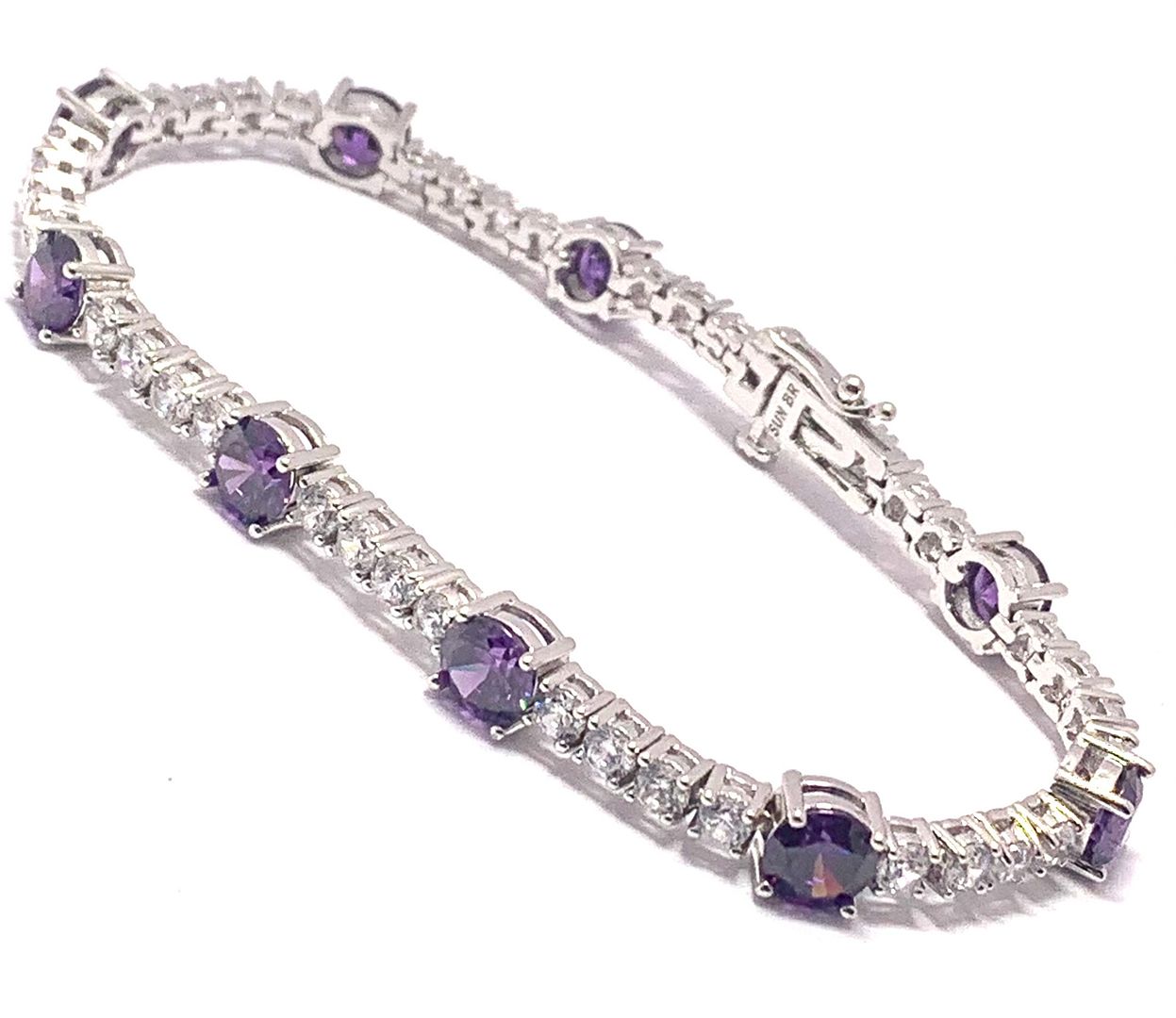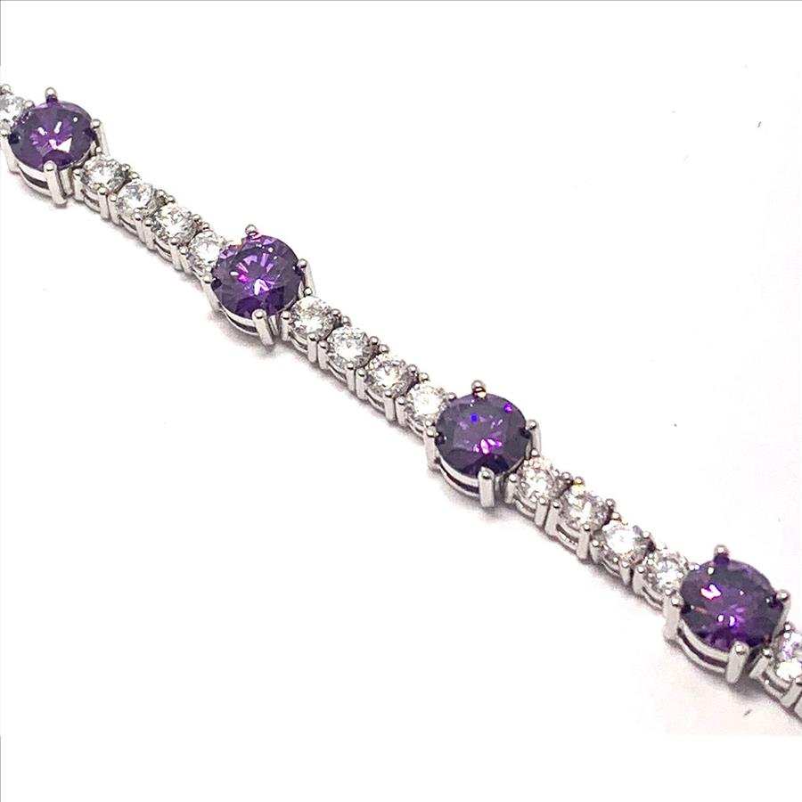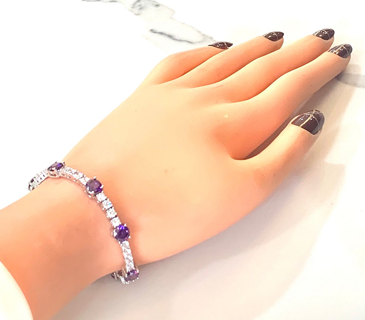 22.00ctw Amethyst & Diamonique Diamond Classic Tennise Bracelet
