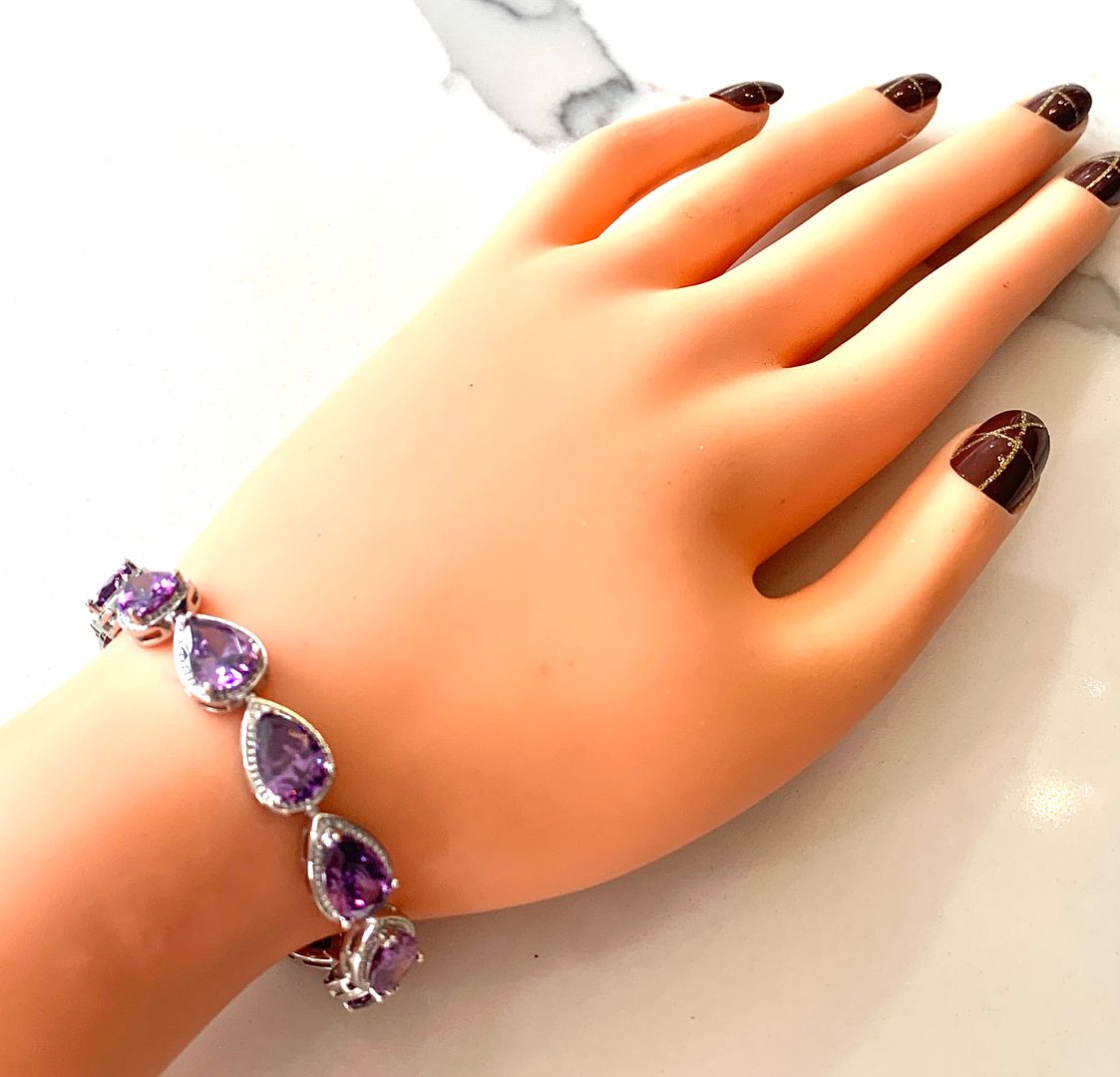 $229 Retail 41.00ctw Pear Shaped Cut Amethyst 7” Fancy Tennis Bracelet