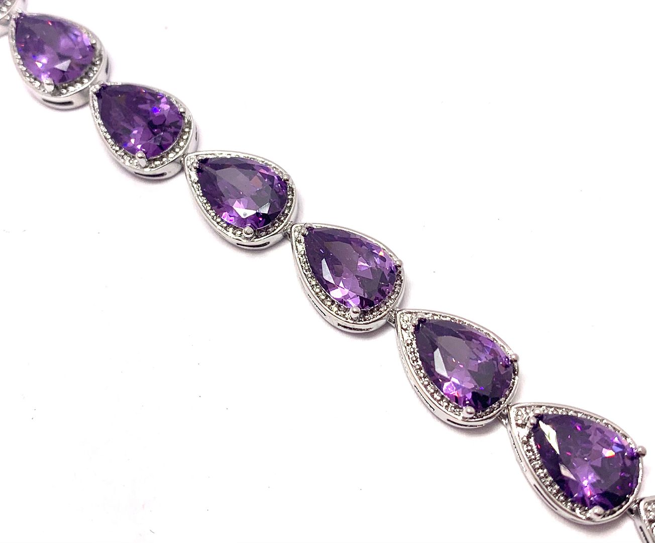 $229 Retail 41.00ctw Pear Shaped Cut Amethyst 7” Fancy Tennis Bracelet