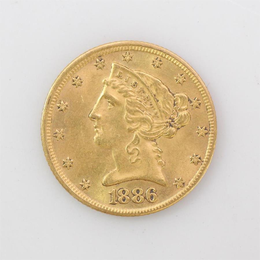 22k Gold 1886 $5 Liberty Head Coin 8.4g