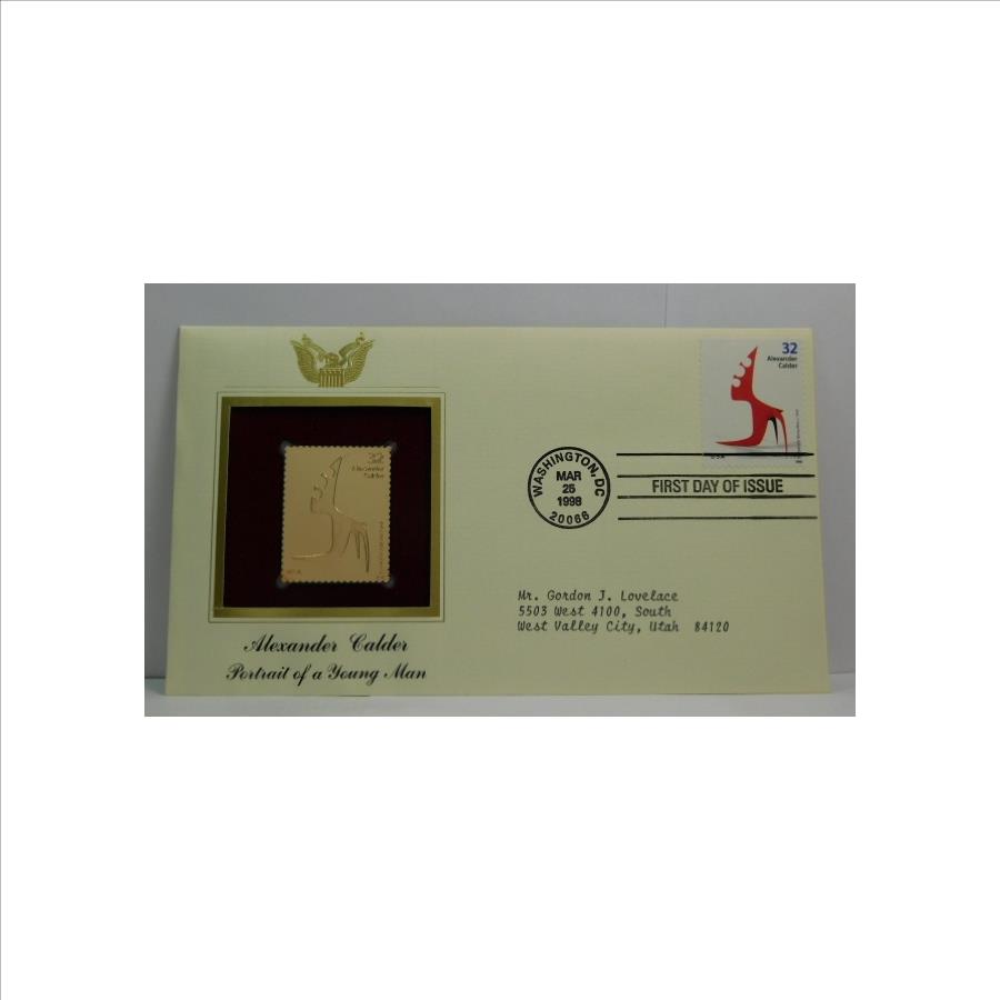 22K Gold Proof Replica Stamp - Alexander Calder - Portrait of a Young Man - Golden Replicas of United States Stamps - FDC