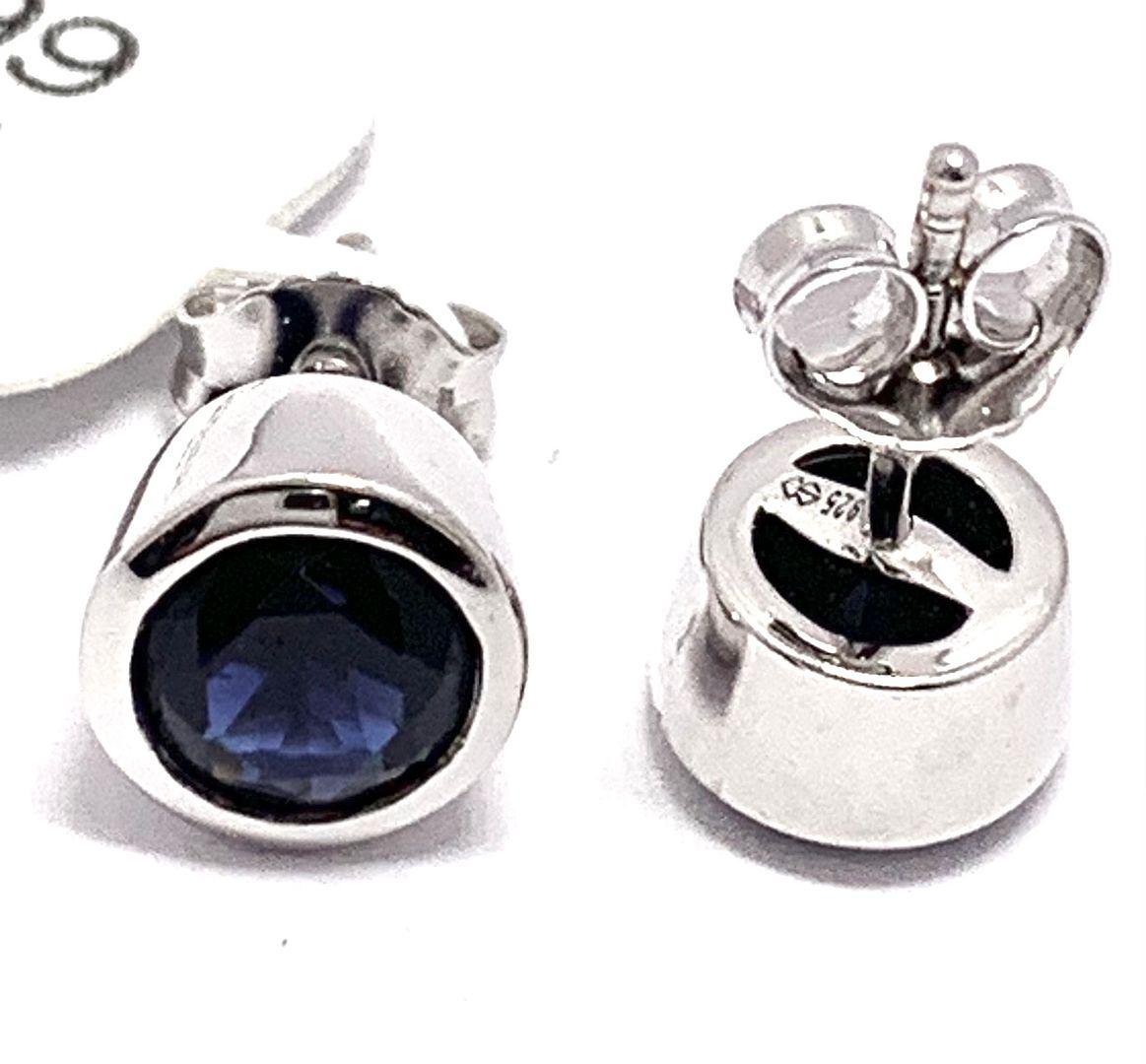 $249 Natural Midnight Blue Sapphire 925 Sterling Silver Stud Earrings Bezel Set Solitaire