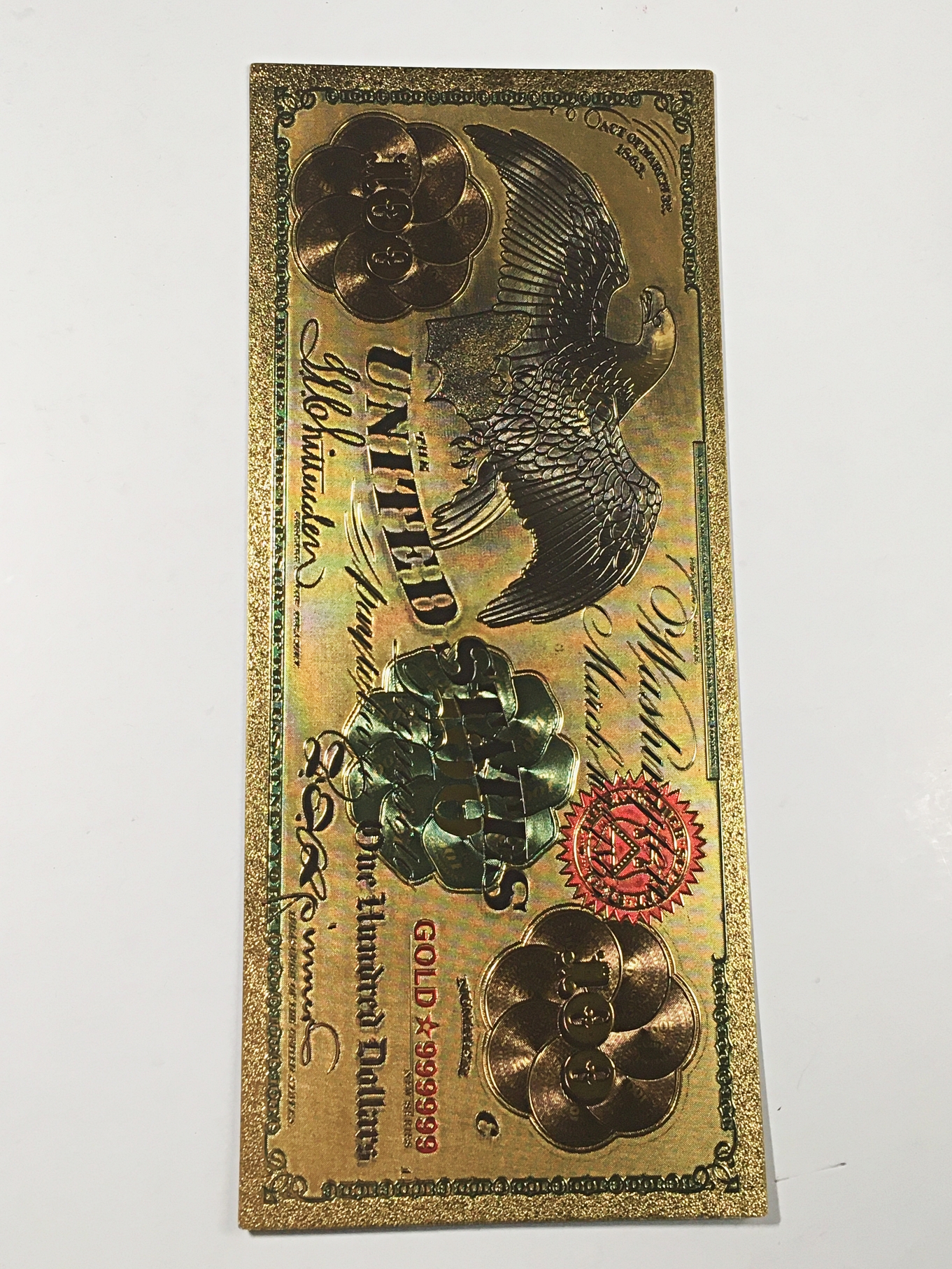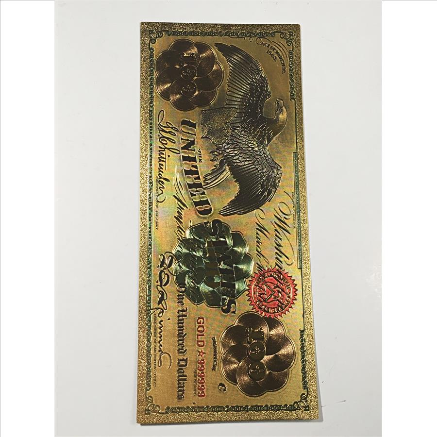 24K Gold Foil 1863 $100 National Bank Note Replica*Large Note in Protective Sleeve