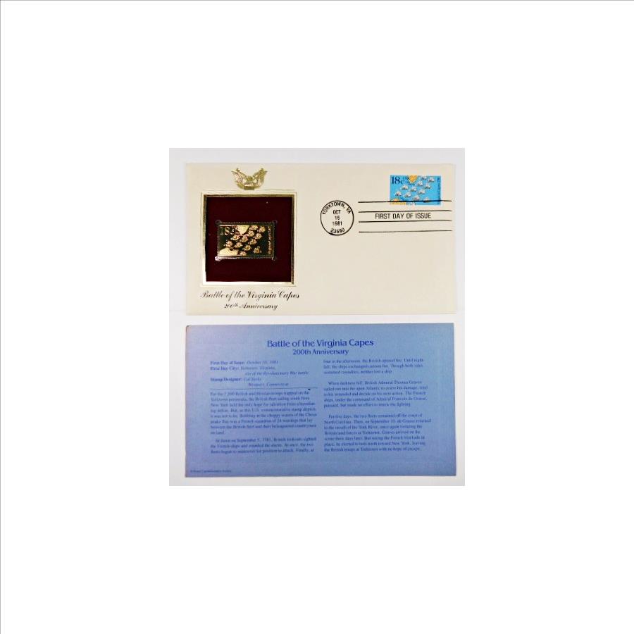 24K Gold Foil Stamp of Original 18c Battle of the Virginia Capes Stamp and FDC*Postmarked 1981 From Yorktown, VA