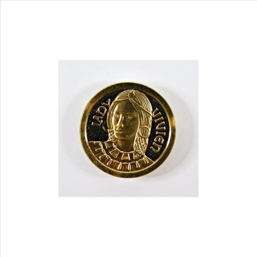 24K Gold Layered Lady Vivien 1986 Franklin Mint Issued Medieval Coin/Medal