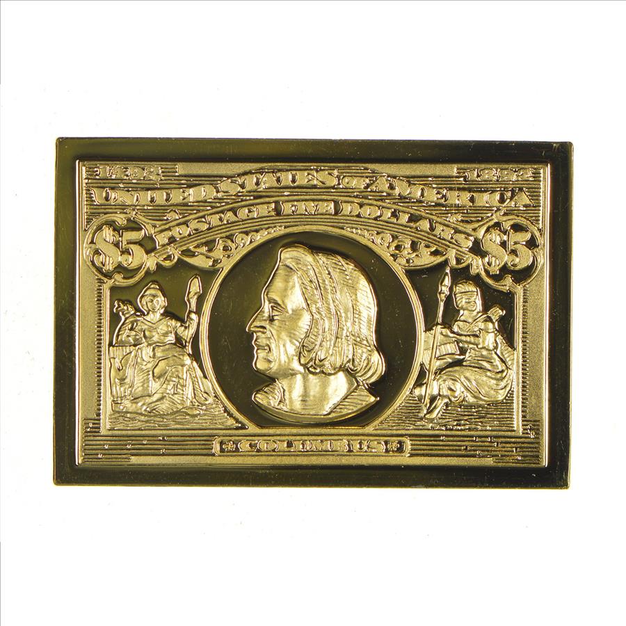 24K Gold Plated SILVER - Christopher Columbus Postage .925 Sterling Silver Stamp - 15.1 Grams - LIMITED - Rare