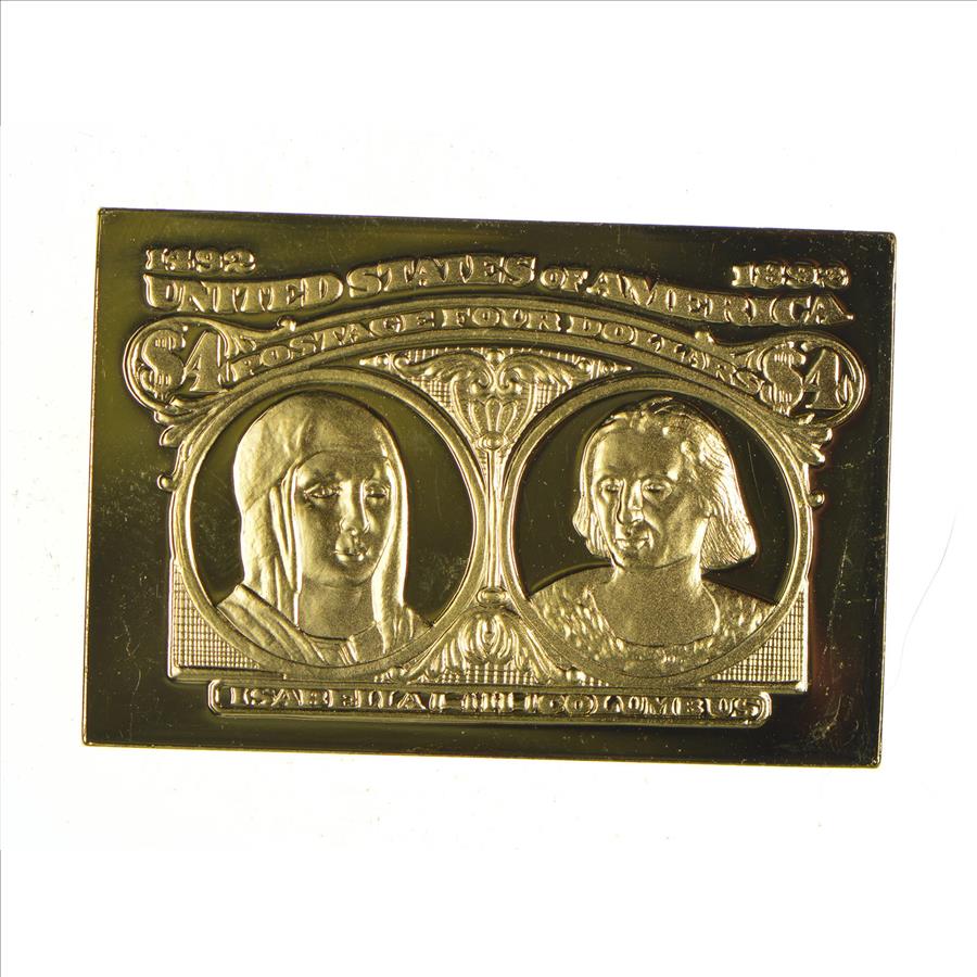 24K Gold Plated SILVER - Isabella and Columbus Postage .925 Sterling Silver Stamp - 15.2 Grams - LIMITED - Rare