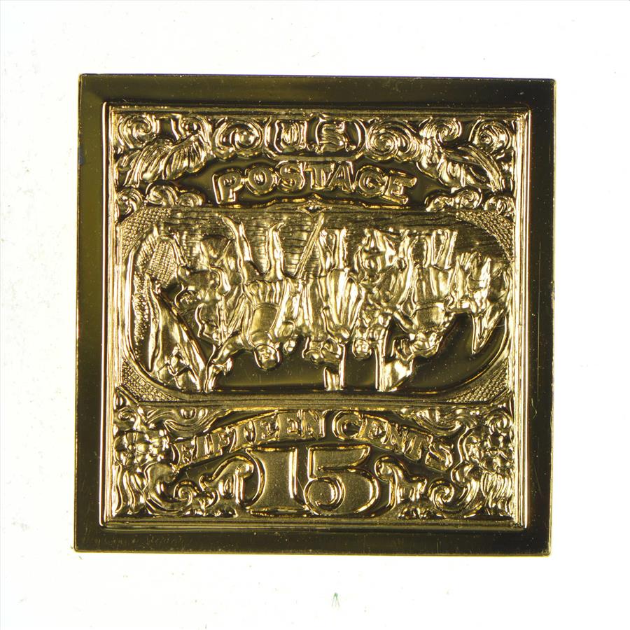 24K Gold Plated SILVER - Landing of Columbus Postage .925 Sterling Silver Stamp - 9.7 Grams - LIMITED - Rare