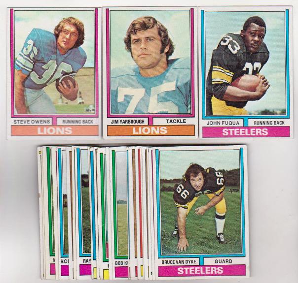 This is a collection of 25 different 1974 Topps football cards. These are mostly in VG-EX to EX condition.  This is an original 46 year old lot.