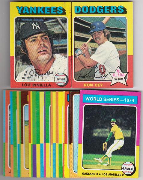 This is a collection of 25 different 1975 Topps baseball cards.  It includes Ron Cey, Lou Piniella, and more.  This is a pretty decent looking lot that averages approximately VG-EX to EX condition although a couple are a little lower grade.  This is an original 47 year old collection.