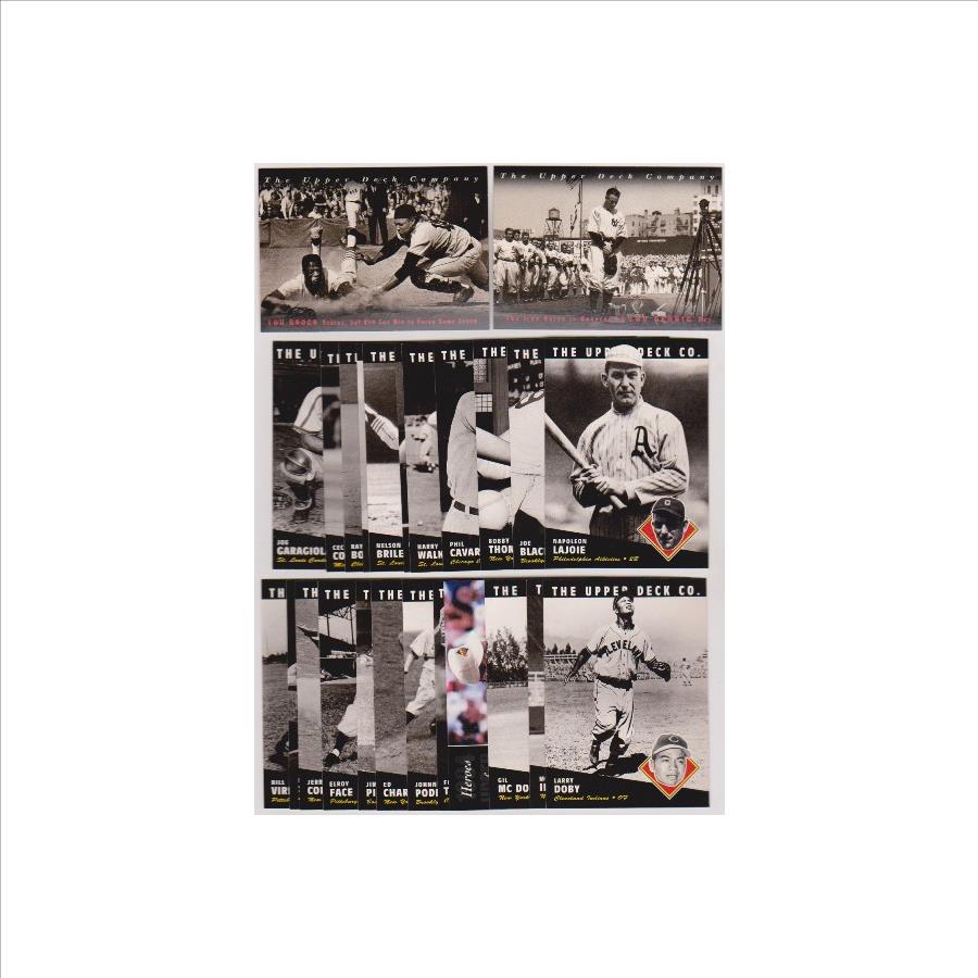 This is a collection of 25 different 1994 Upper Deck All-Time Heroes baseball cards.  This lot has several Hall of Famers including Lou Gehrig, Lou Brock, Larry Doby, Napoleon Lajoie, and more.  These mostly range from EX-MT to NM-MT condition.