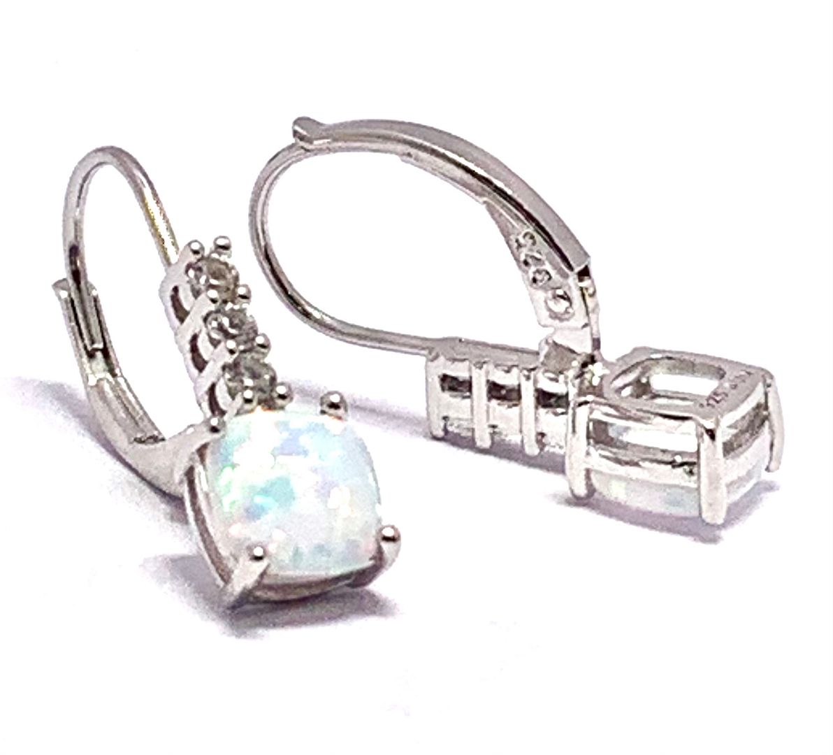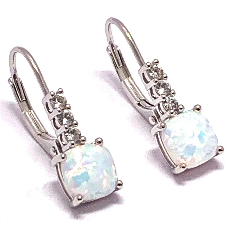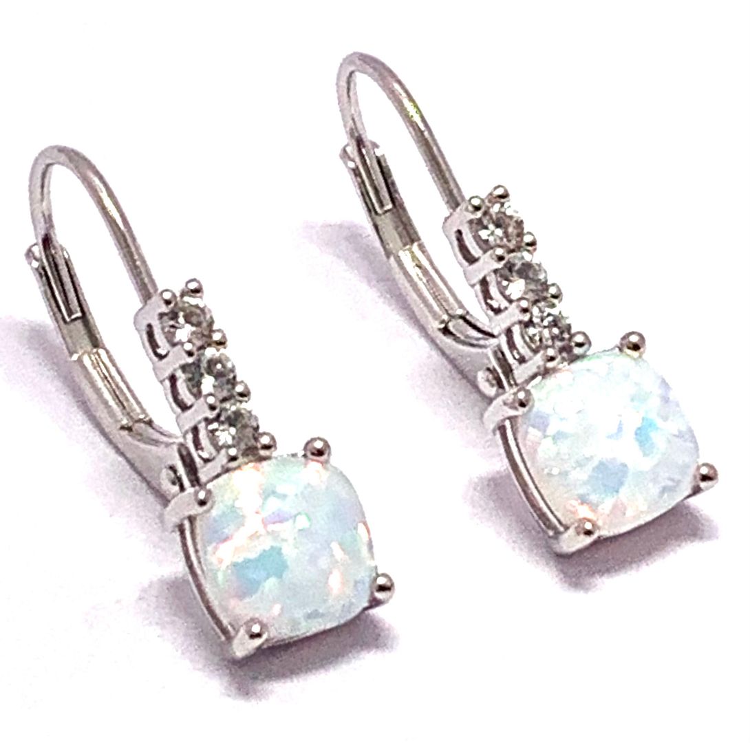$275 Natural Opal .925 Sterling Silver Lever Back Earrings - DANCING DIAMOND Collection