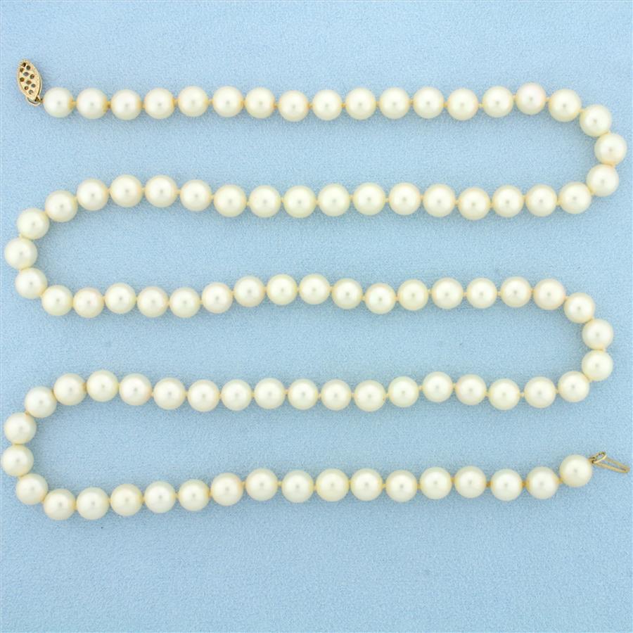 29 Inch Akoya Pearl Strand Necklace in 14K Yellow Gold