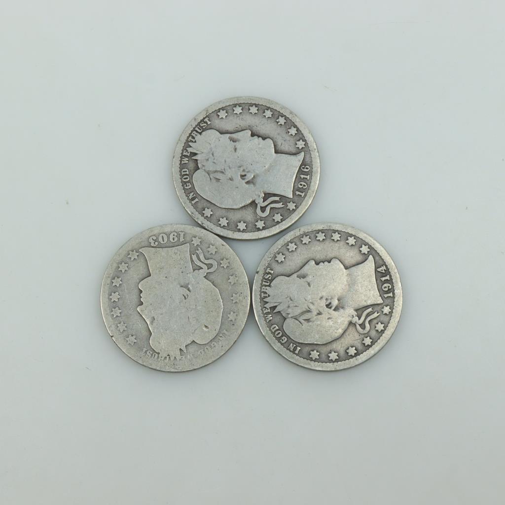 3 Barber Silver Quarters