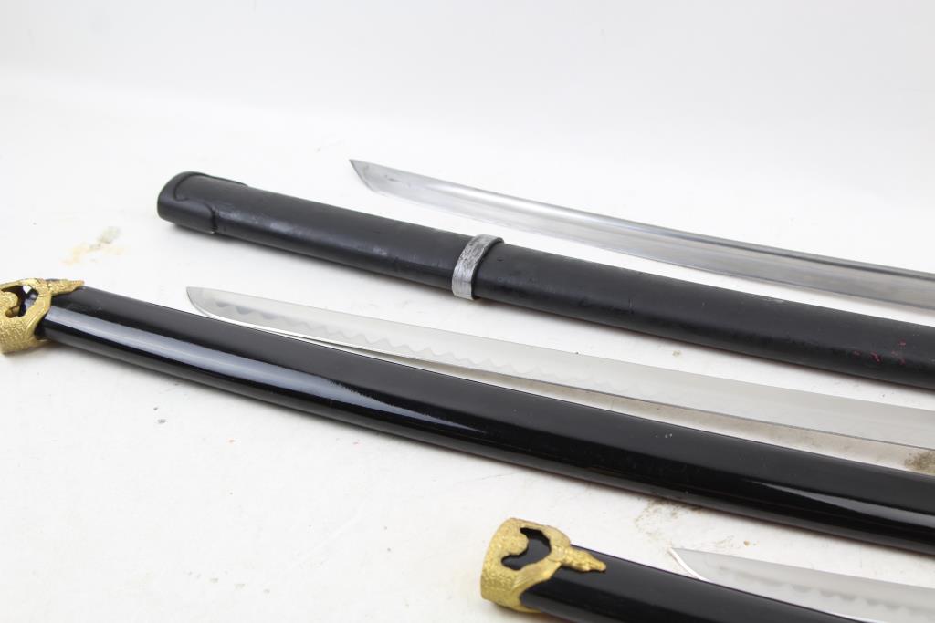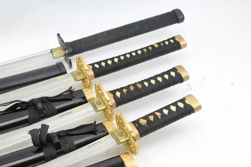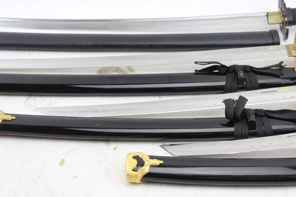 Get a great deal with this online auction for swords presented by Property Room on behalf of a law enforcement or public agency client. - Brand/Model: 3 Piece Daisho Set And Samurai Sword: 4 Items (unknown brand/model)