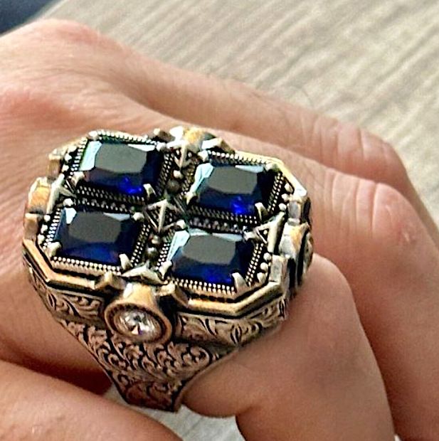 3.00ctw Blue Topaz Unisex Ring 18K Gold Over Size 10
