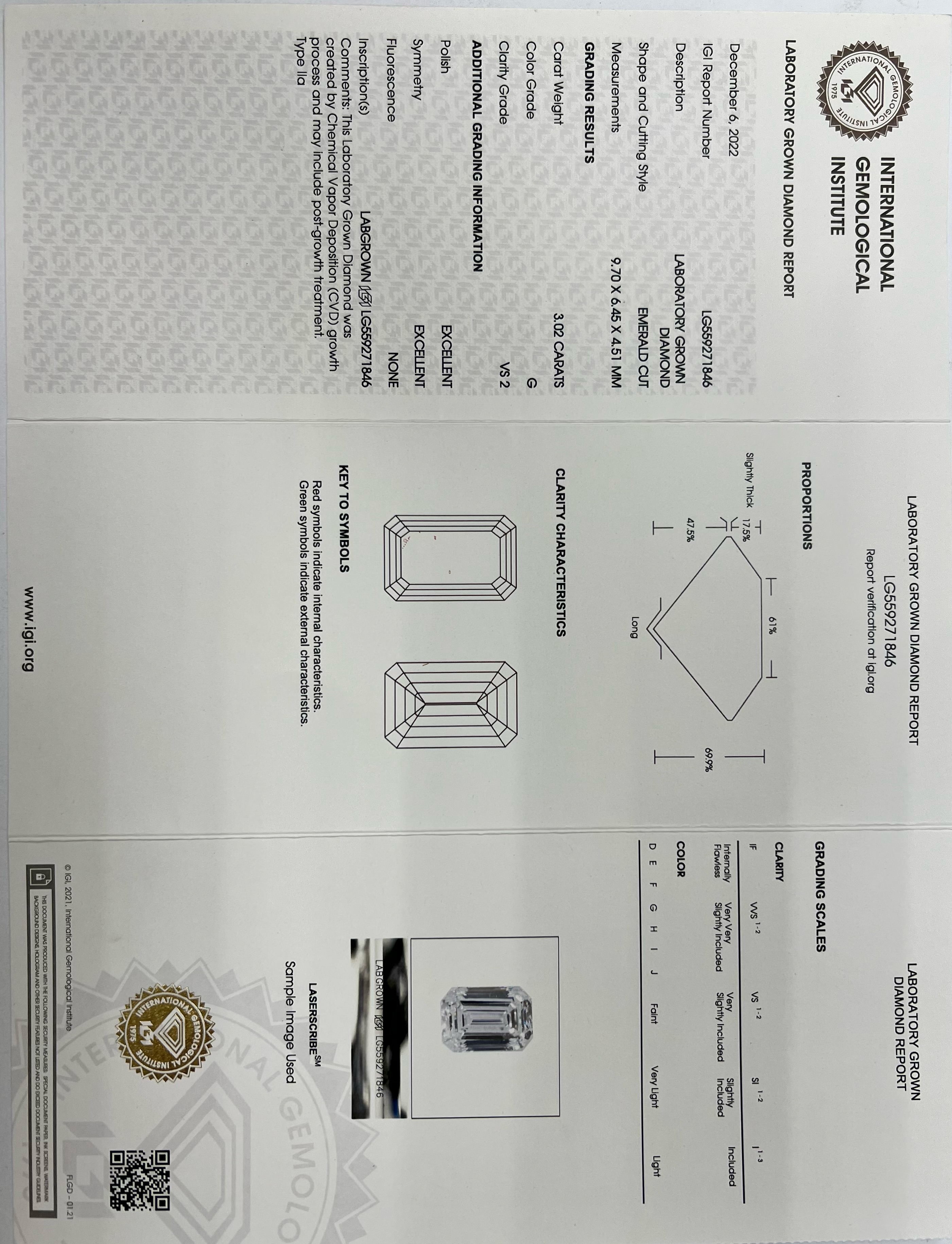 STUNNING 3.02CT LAB GROWN DIAMOND WITH IGI REPORT