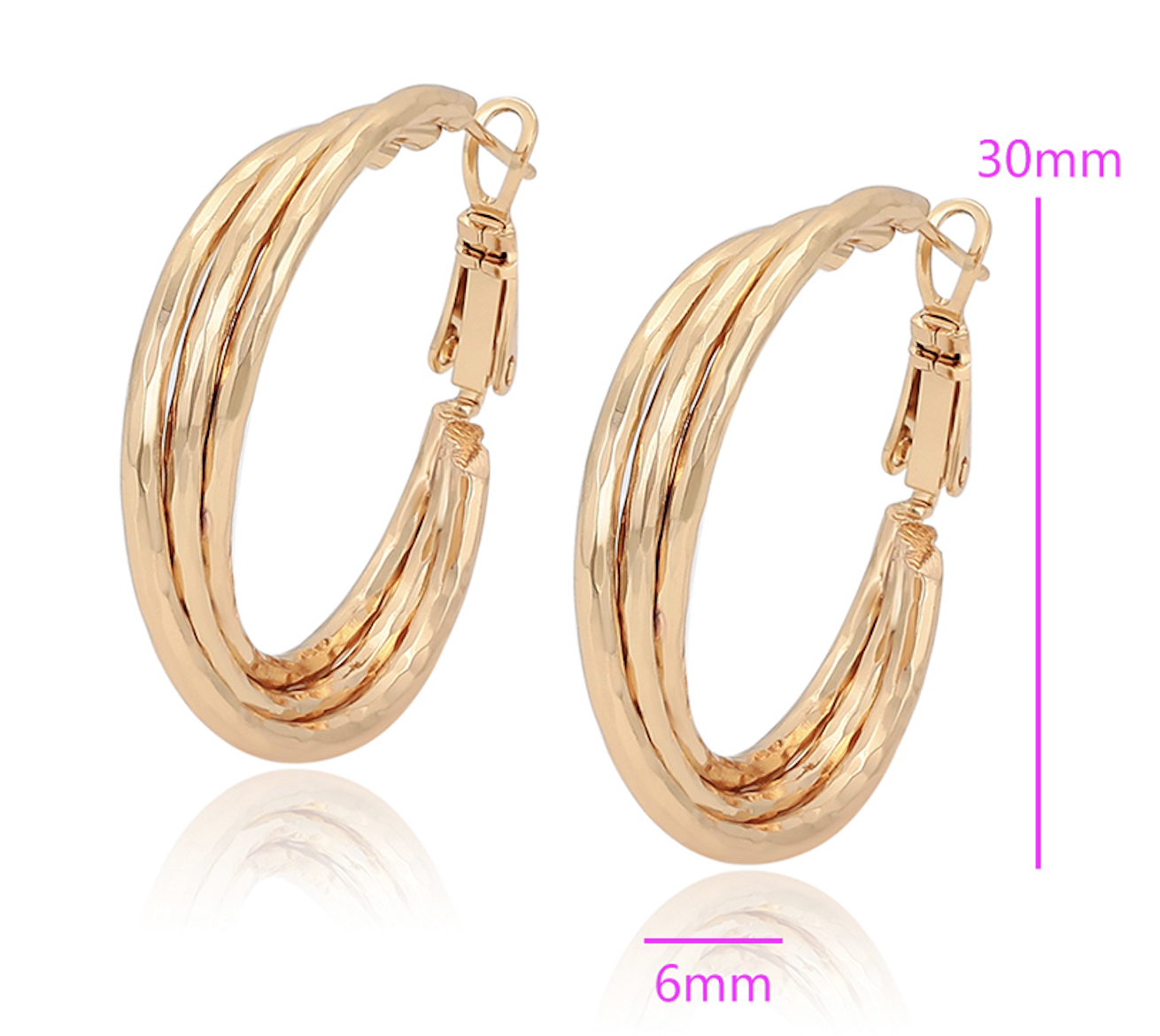 32.0mm 18K Gold Plated Triple Hoop Earrings
